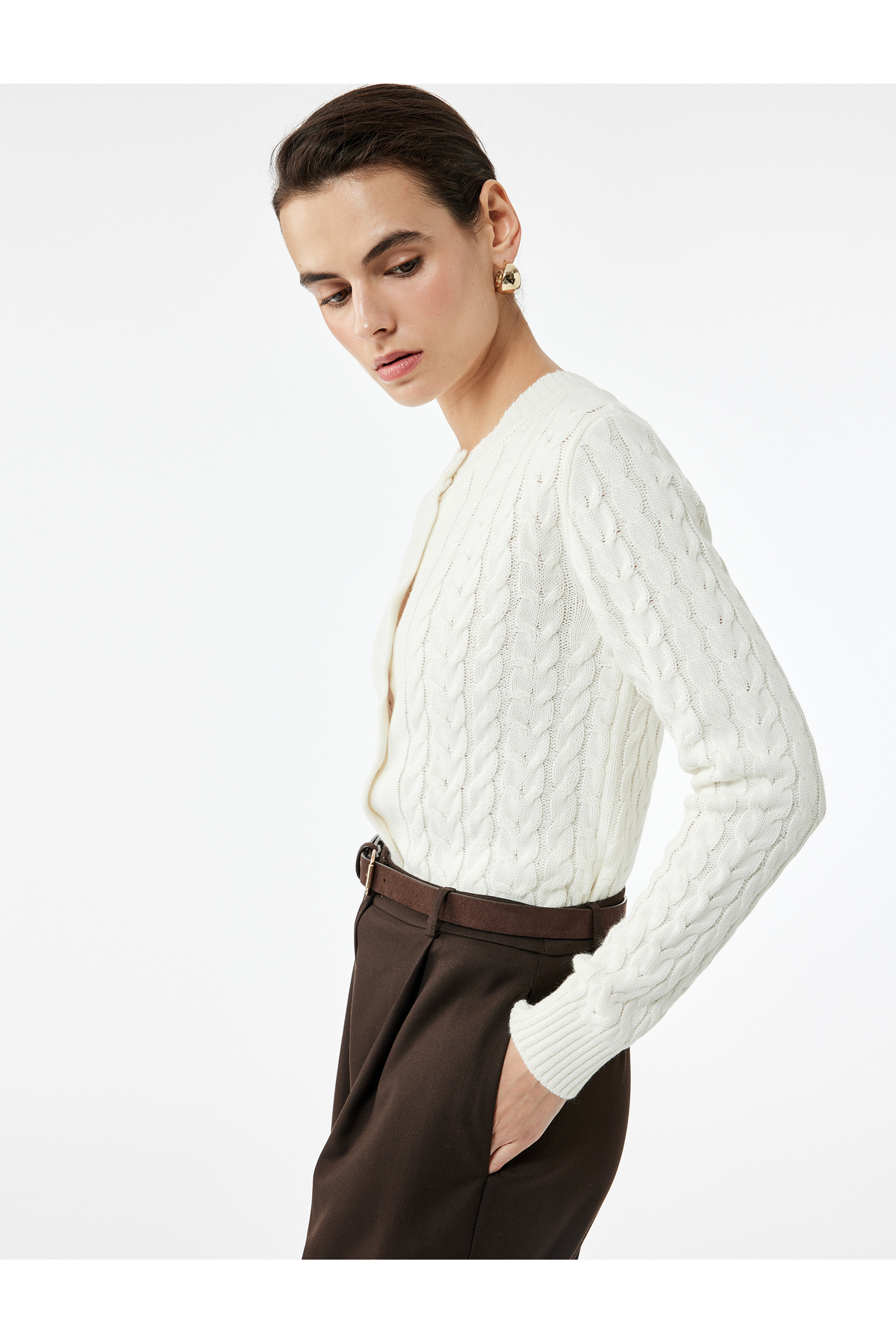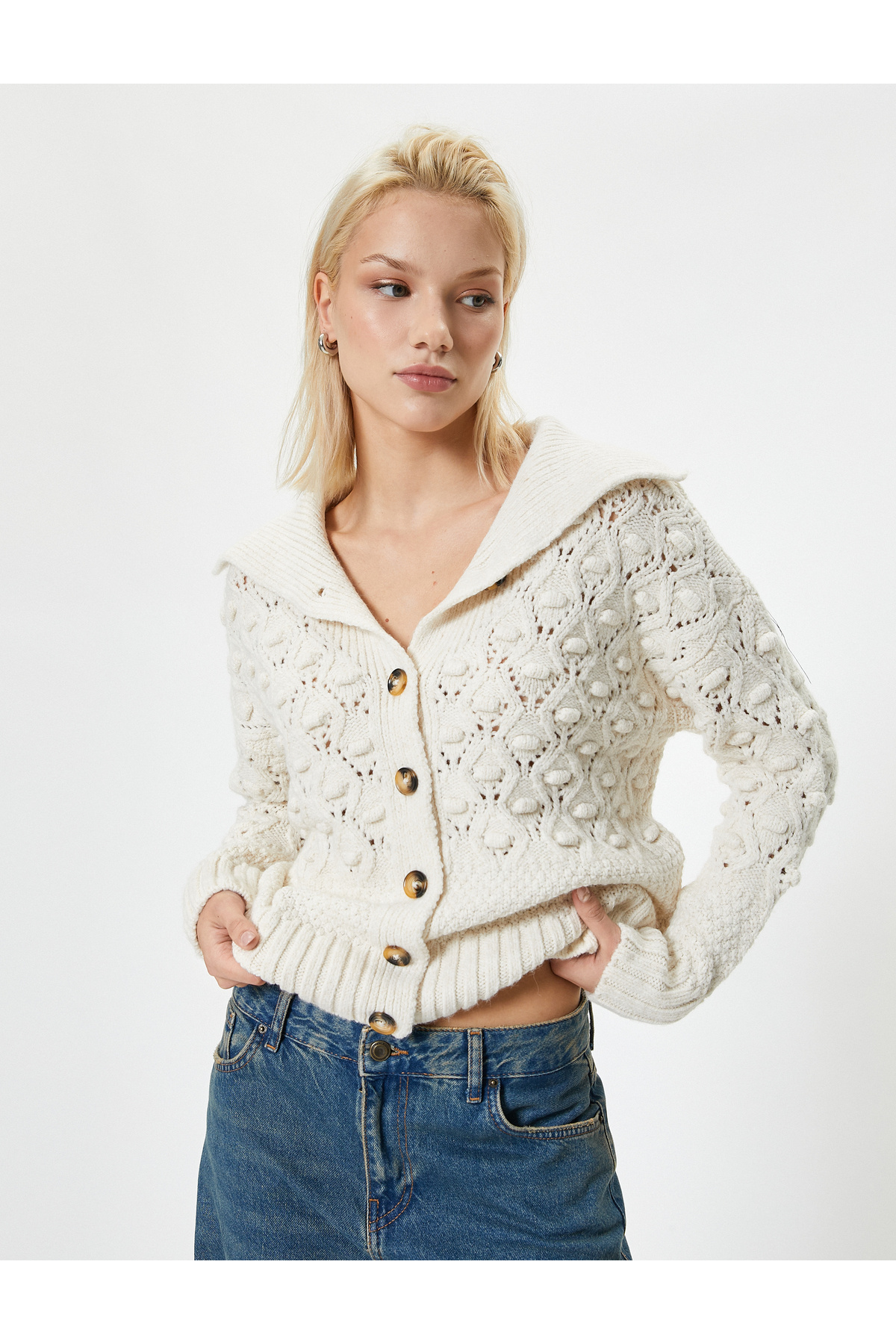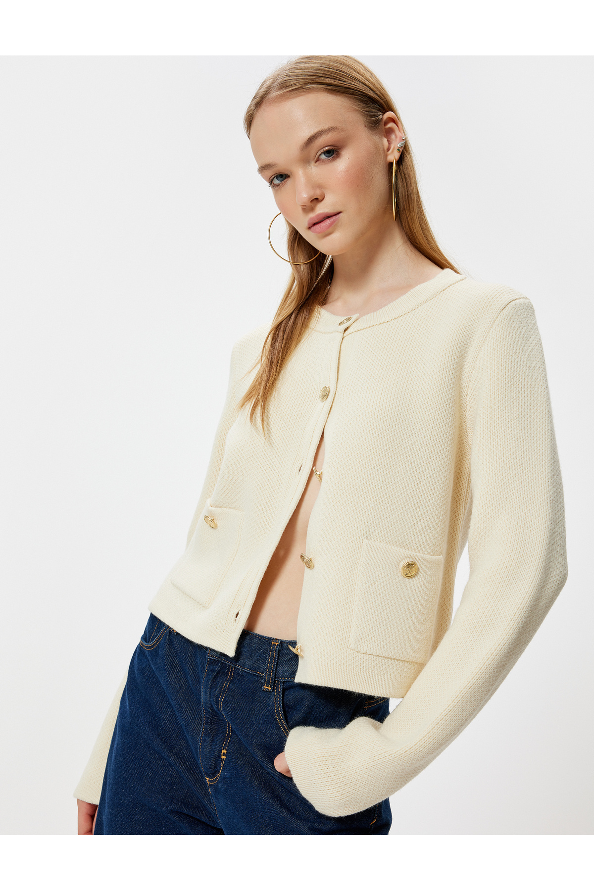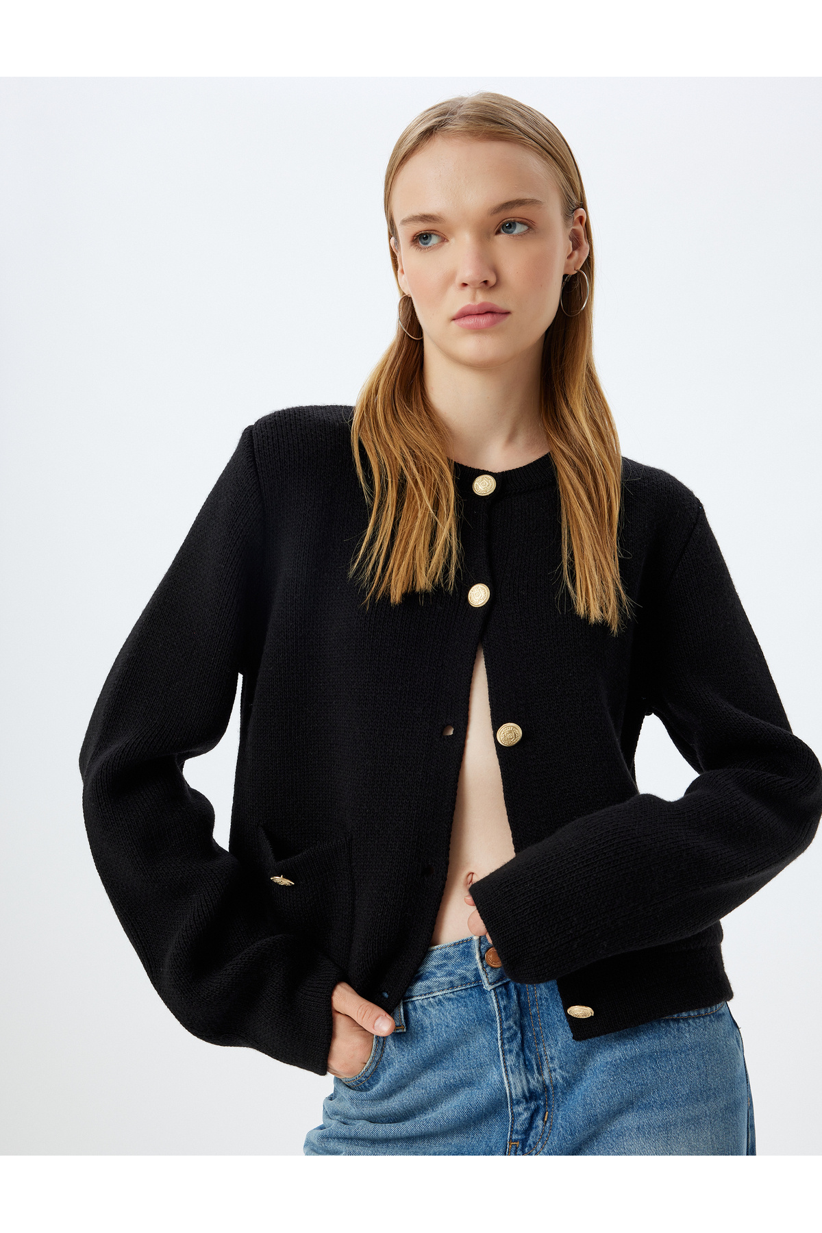 Cepli Uzun Kollu Düğmeli Bisiklet Yaka Triko Hırka Cepli Uzun Kollu Düğmeli Bisiklet Yaka Triko Hırka 5SAK90016HT XL
