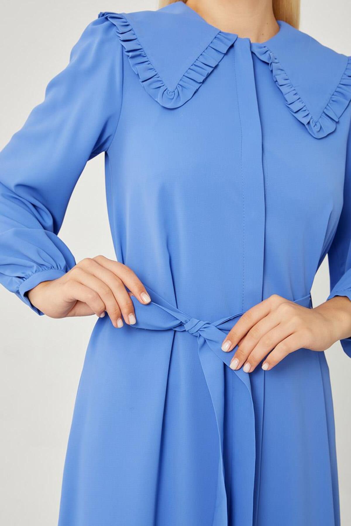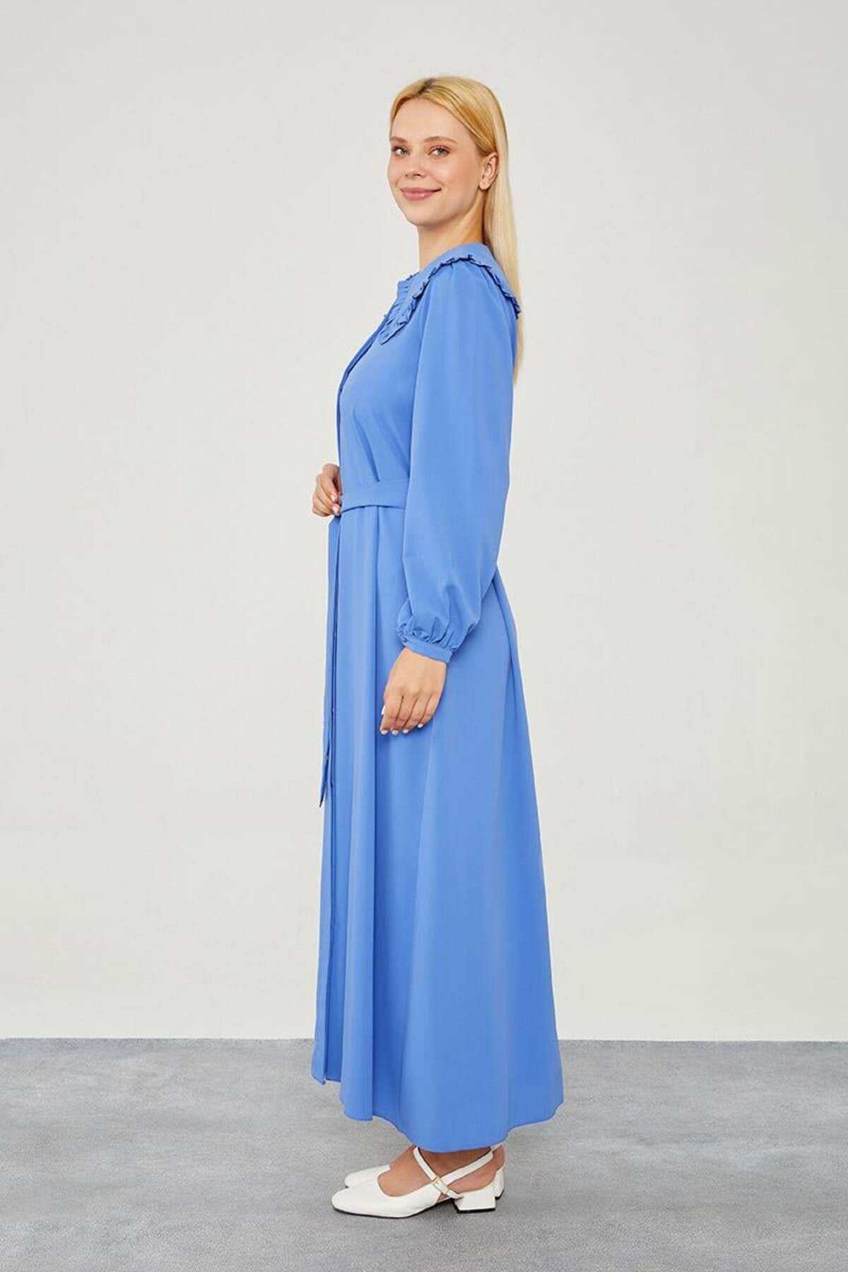 Mavi Yakası Fırfır Detaylı Elbise Mavi Yakası Fırfır Detaylı Elbise 330073 L