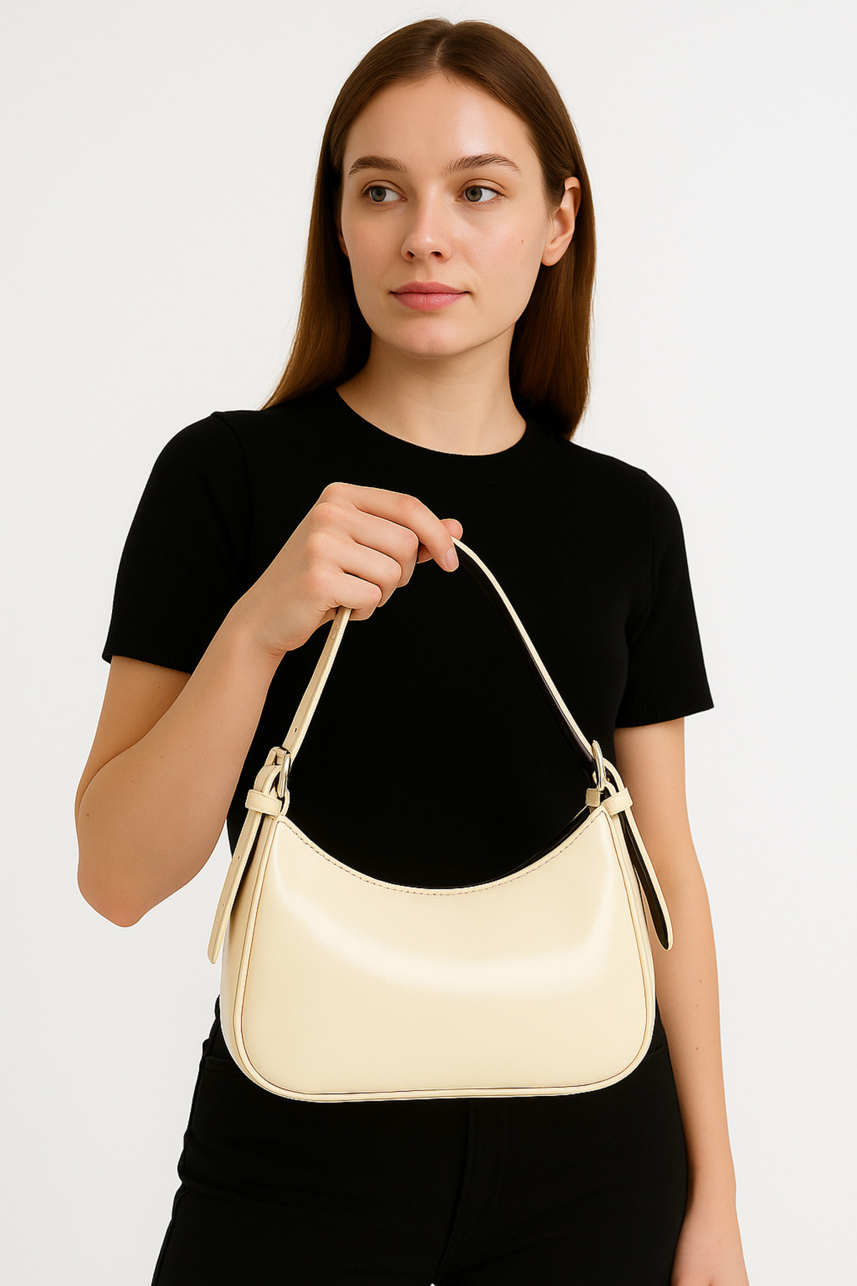Kadın Krem Parlak Deri Gold Aksesuar Maskotlu Omuz Çantası Kadın Krem Parlak Deri Gold Aksesuar Maskotlu Omuz Çantası MB001145 تک سایز