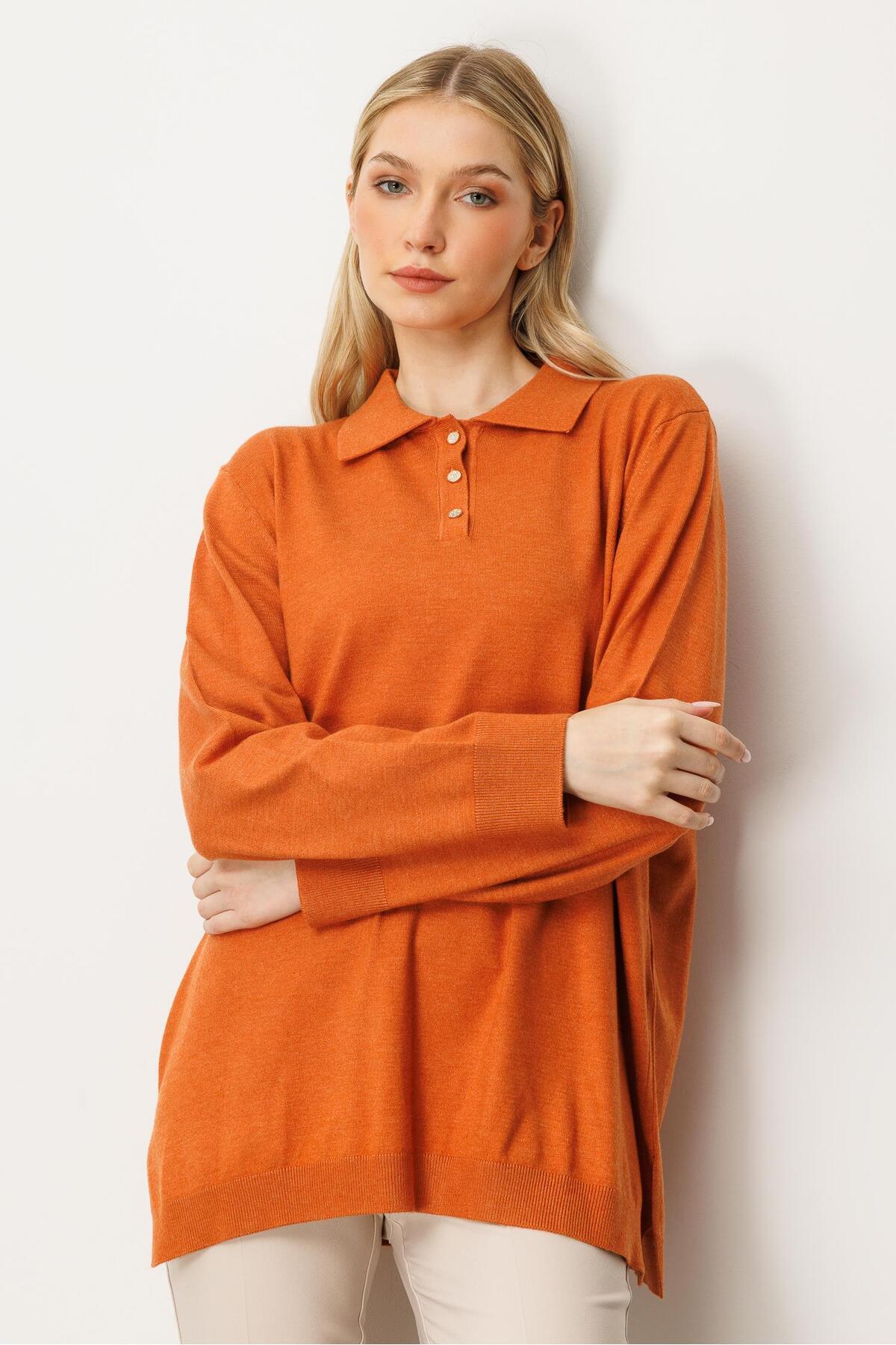 Mutlu Ertan Kadın Polo Yaka Uzun Kollu Triko Bluz Kırmızı 20102 Mutlu Ertan Kadın Polo Yaka Uzun Kollu Triko Bluz Kırmızı 20102 L/XL