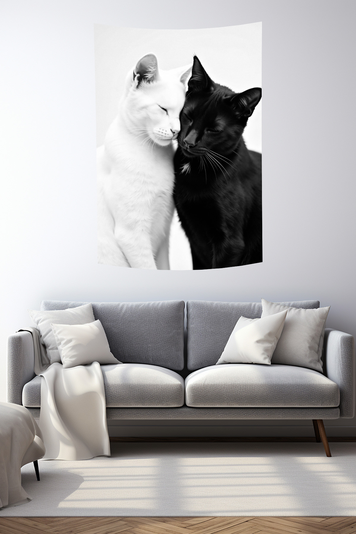 Siyah Beyaz Sevgili Kediler Leke Tutmaz Kumaş Duvar Örtüsü Duvar Halısı Tapestry Siyah Beyaz Sevgili Kediler Leke Tutmaz Kumaş Duvar Örtüsü Duvar Halısı Tapestry PNTRS37 140 x 230
