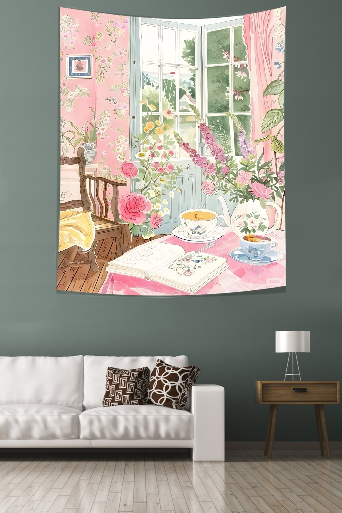 Pembe Bohem Bahar Manzara Desen Çiçekli Leke Tutmaz Kumaş Duvar Örtüsü Duvar Halısı Tapestry Pembe Bohem Bahar Manzara Desen Çiçekli Leke Tutmaz Kumaş Duvar Örtüsü Duvar Halısı Tapestry PNTRS37 140 x 230