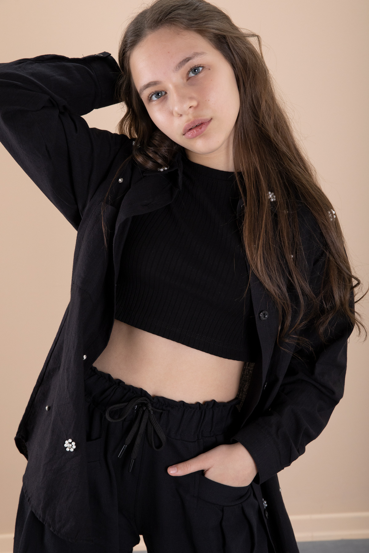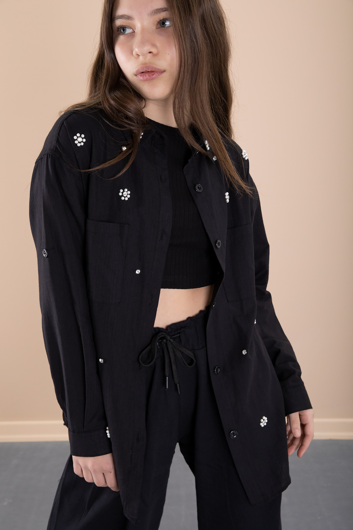 Siyah Kız Çocuk Croplu Taşlı Gömlek ve Pantolonlu 3'lü Takım 20471 Siyah Kız Çocuk Croplu Taşlı Gömlek ve Pantolonlu 3'lü Takım 20471 GRPCM00023159 14-15 Yaş