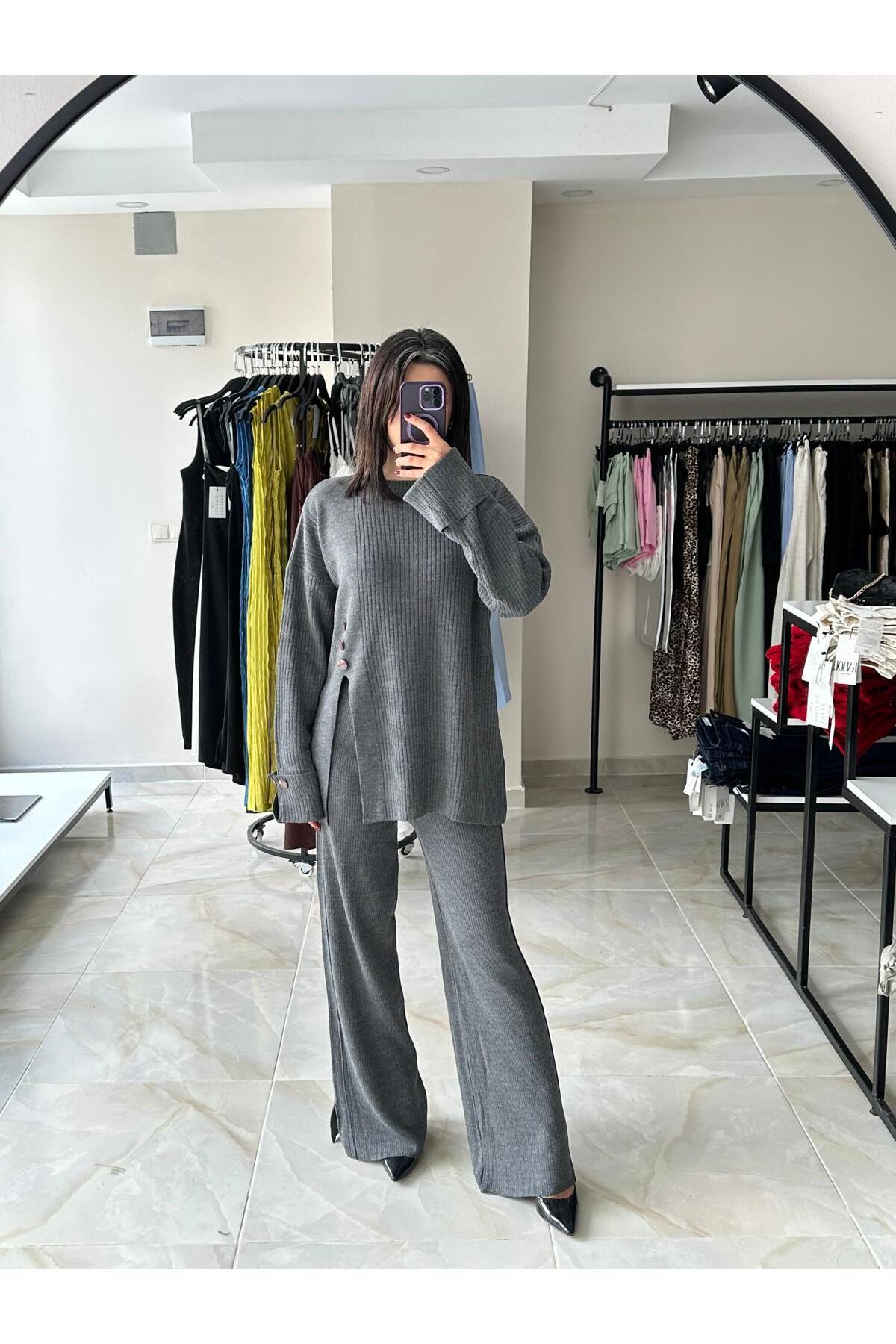 KOL DÜĞME DETAYLI GRİ TRİKO TAKIM KOL DÜĞME DETAYLI GRİ TRİKO TAKIM 0202 Standart