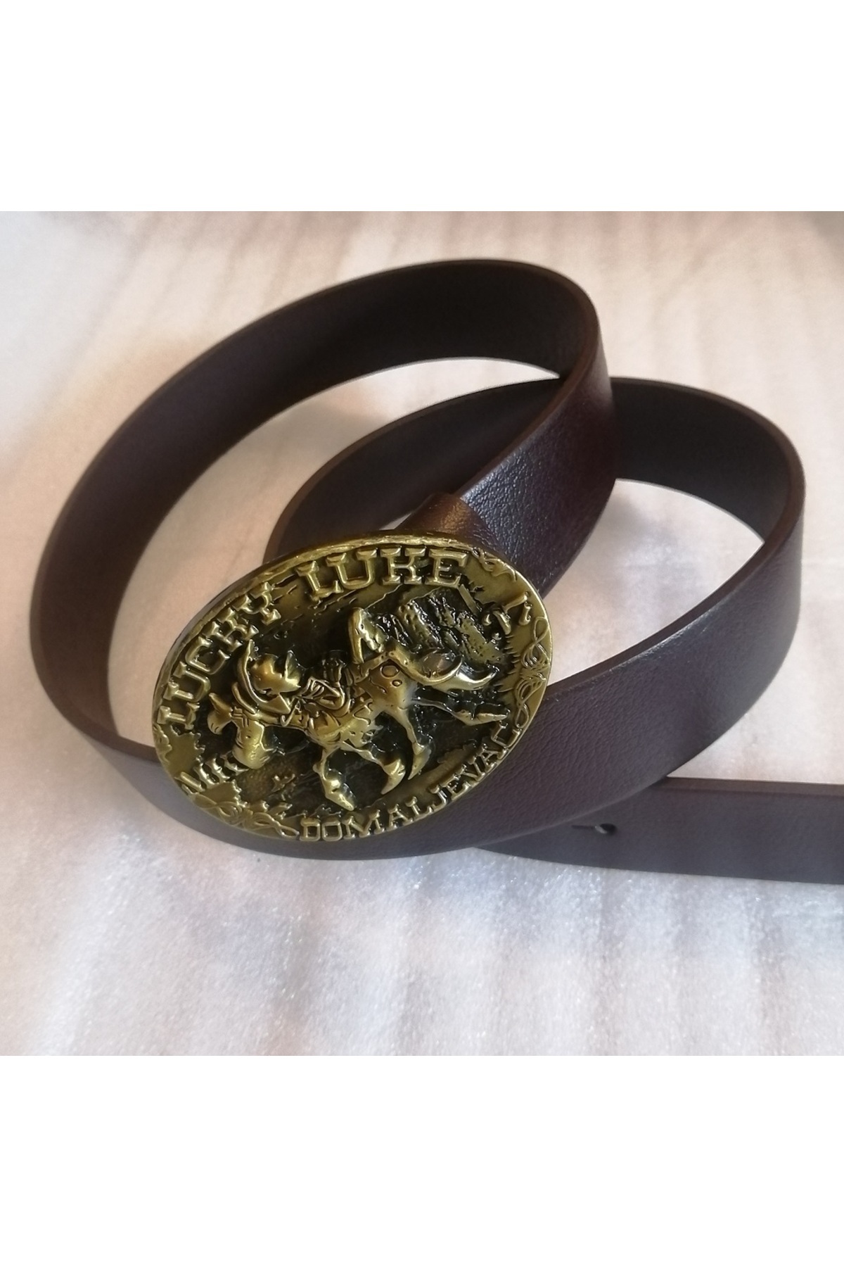 Unisex hakiki dana derisi kahve bronz atı üzerinde Redkit Lucky Luke kovboy tokalı kemer Unisex hakiki dana derisi kahve bronz atı üzerinde Redkit Lucky Luke kovboy tokalı kemer 5575853 130 CM