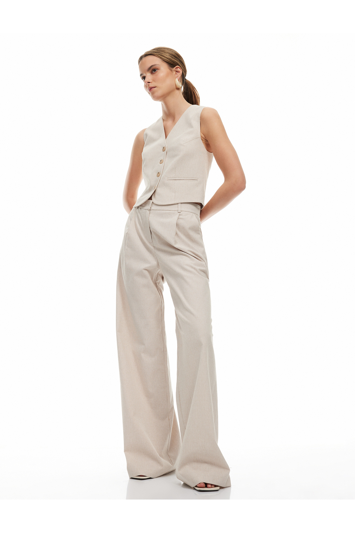 Cepli Pile Detaylı Geniş Düz Paça Pantolon Cepli Pile Detaylı Geniş Düz Paça Pantolon 5SAK40032PW 46