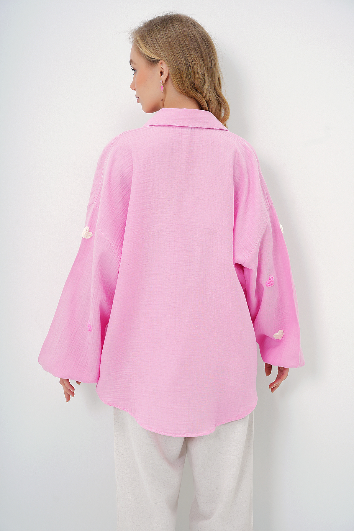 Kadın Şeker Pembe Süzene Kalp İşlemeli Oversize Müslin Keten Gömlek ALC-X13791 Kadın Şeker Pembe Süzene Kalp İşlemeli Oversize Müslin Keten Gömlek ALC-X13791 40