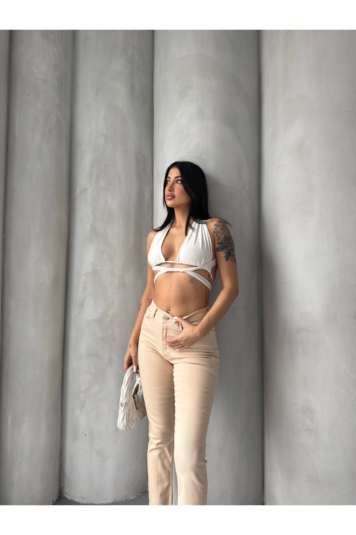 Yüksek Bel Bej Kesik Paça Boyfit Jean Yüksek Bel Bej Kesik Paça Boyfit Jean 050bej 32