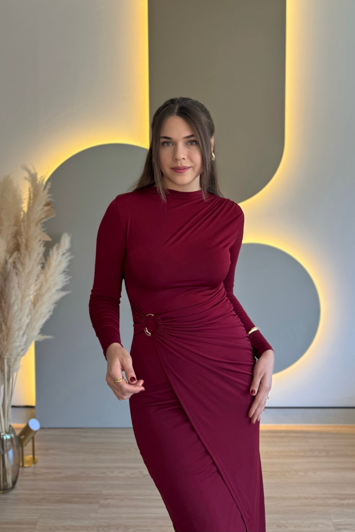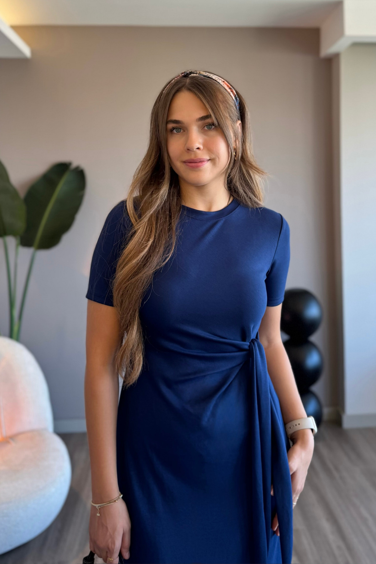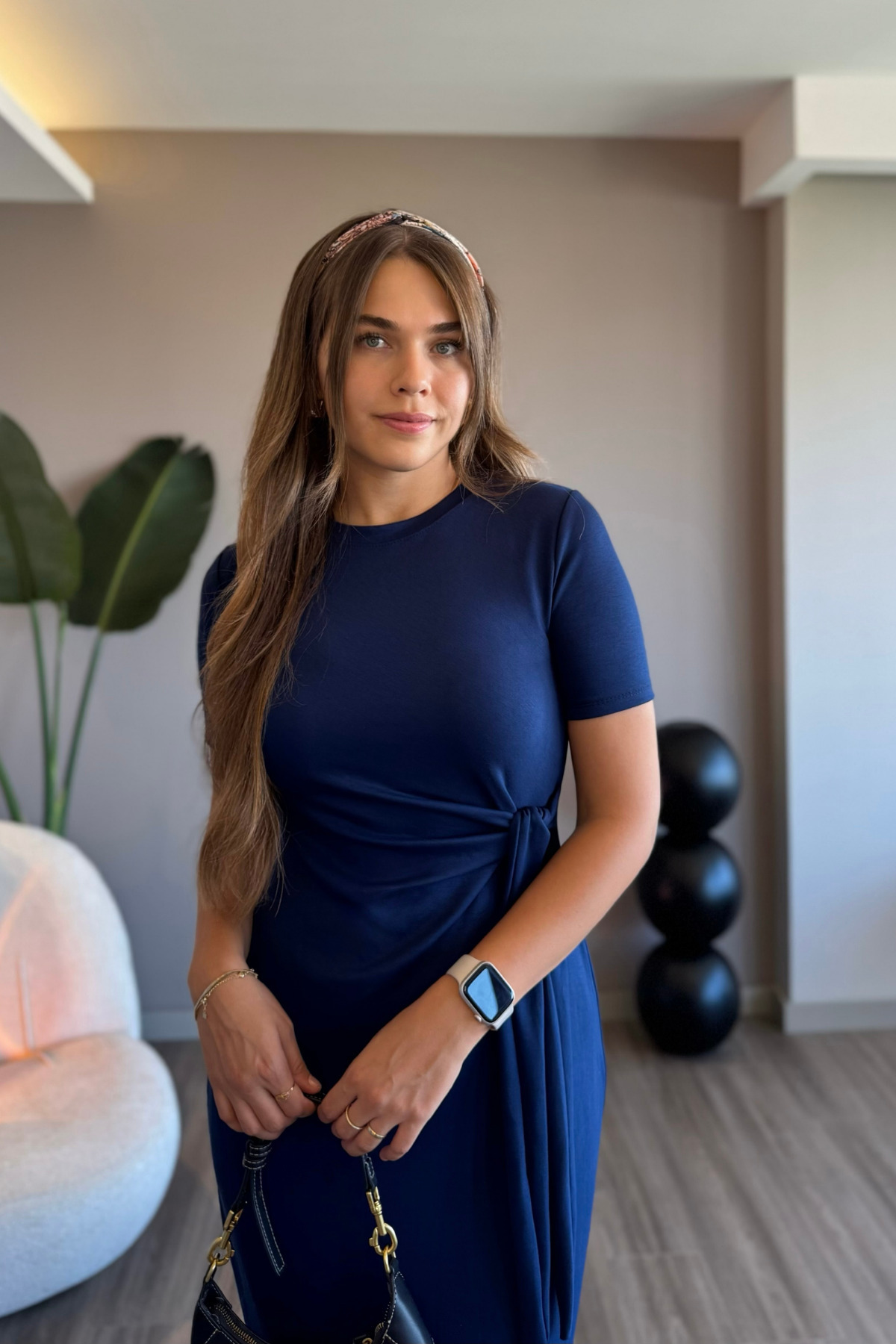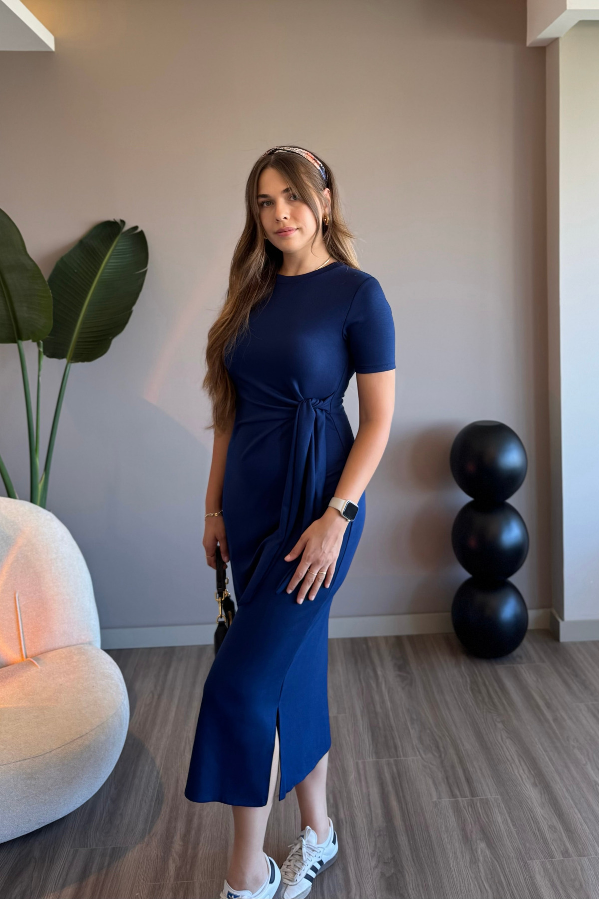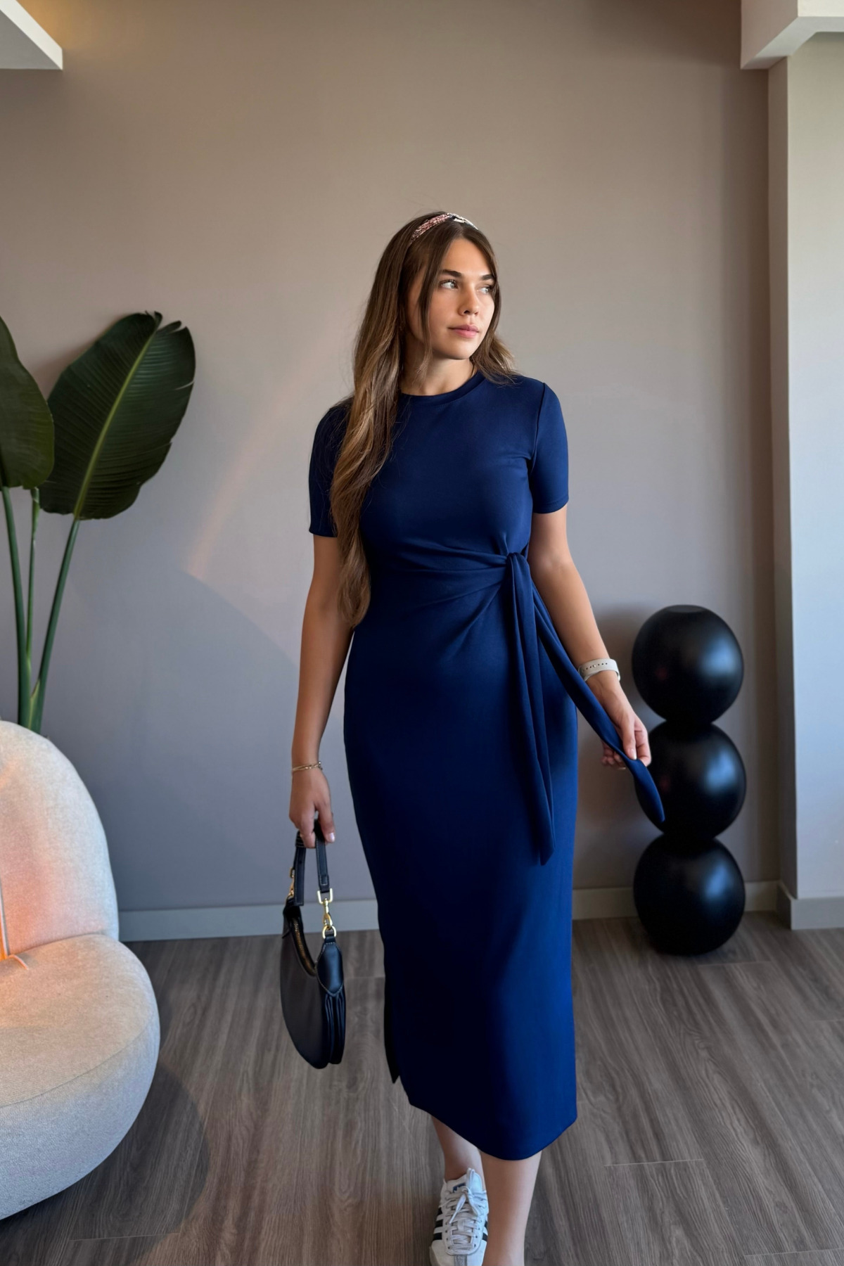 Yandan Bağlamalı Modal Kumaş Lacivert Midi Elbise Yandan Bağlamalı Modal Kumaş Lacivert Midi Elbise ELB08 L