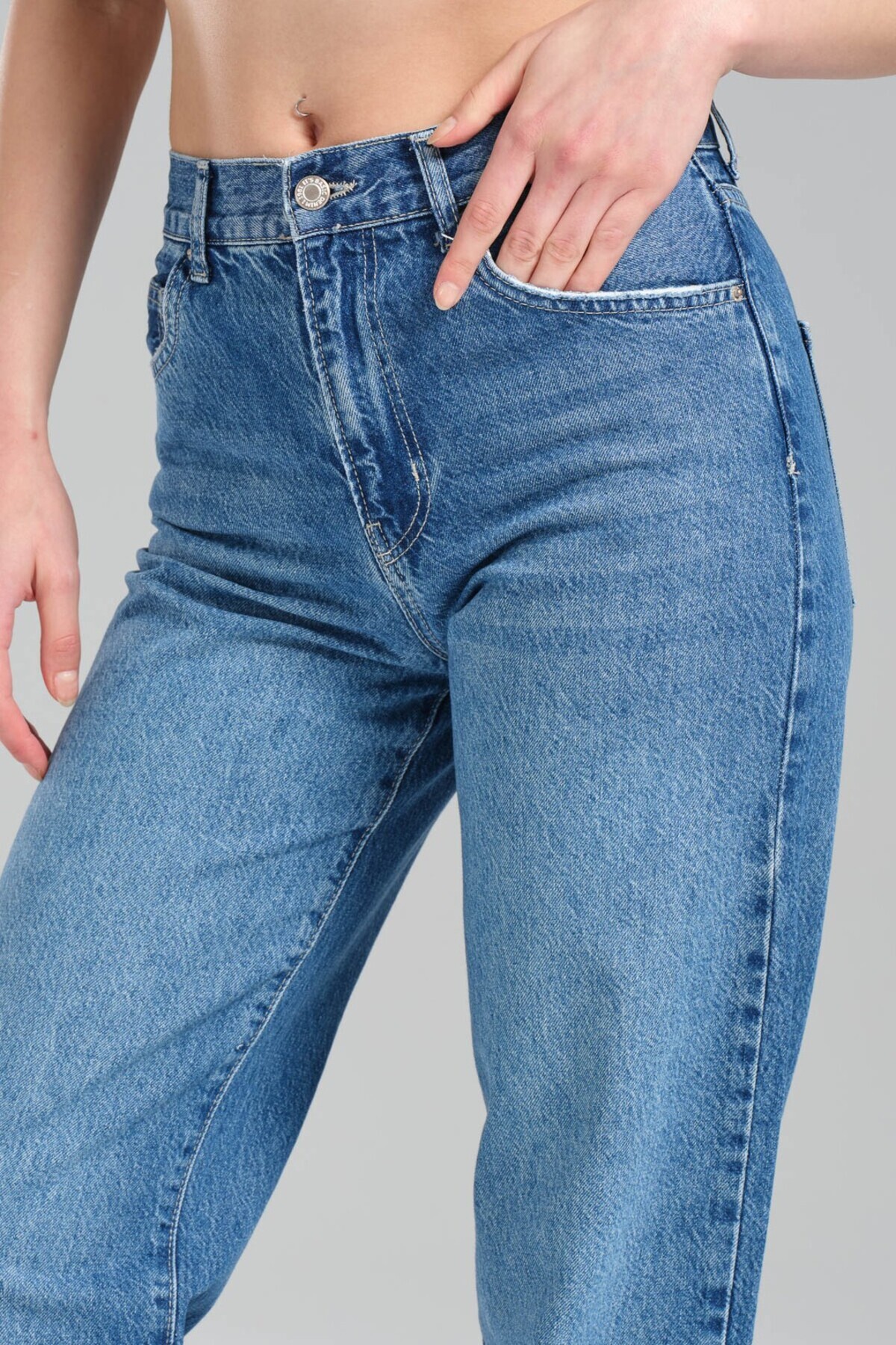 Kadın Mavi Kot Rengi Yüksek Bel %100 Koton Loose Fit Denim Jean Kadın Mavi Kot Rengi Yüksek Bel %100 Koton Loose Fit Denim Jean 2880-2S5-4 42