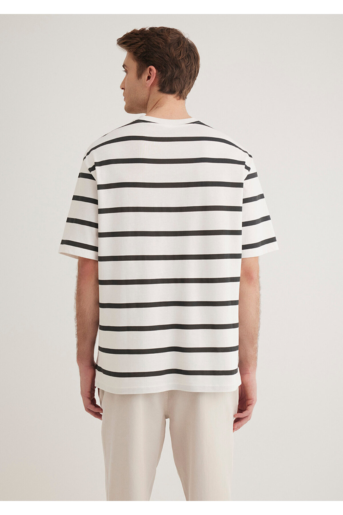 Siyah Çizgili Ekru Tişört Loose Fit / Bol Rahat Kesim 0612512-70057 Siyah Çizgili Ekru Tişört Loose Fit / Bol Rahat Kesim 0612512-70057 2XL