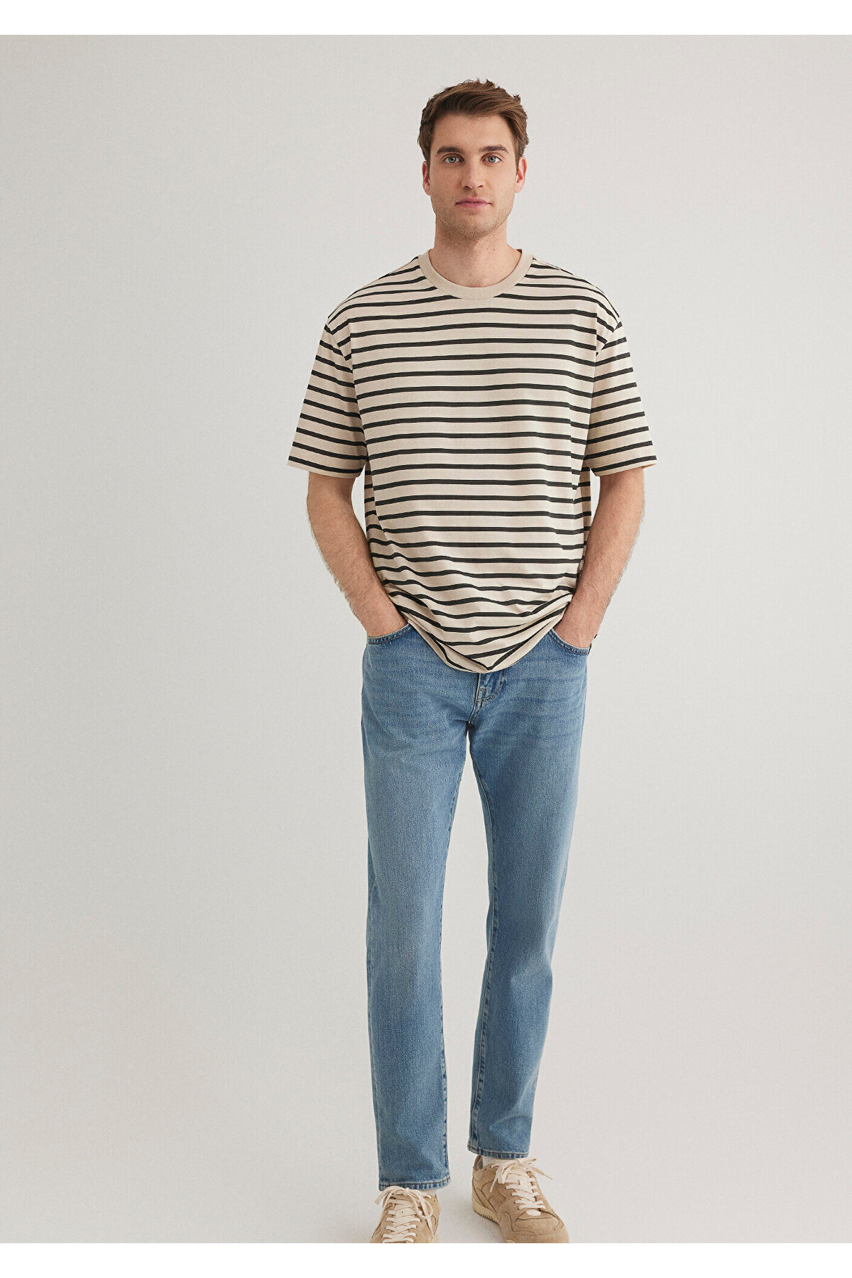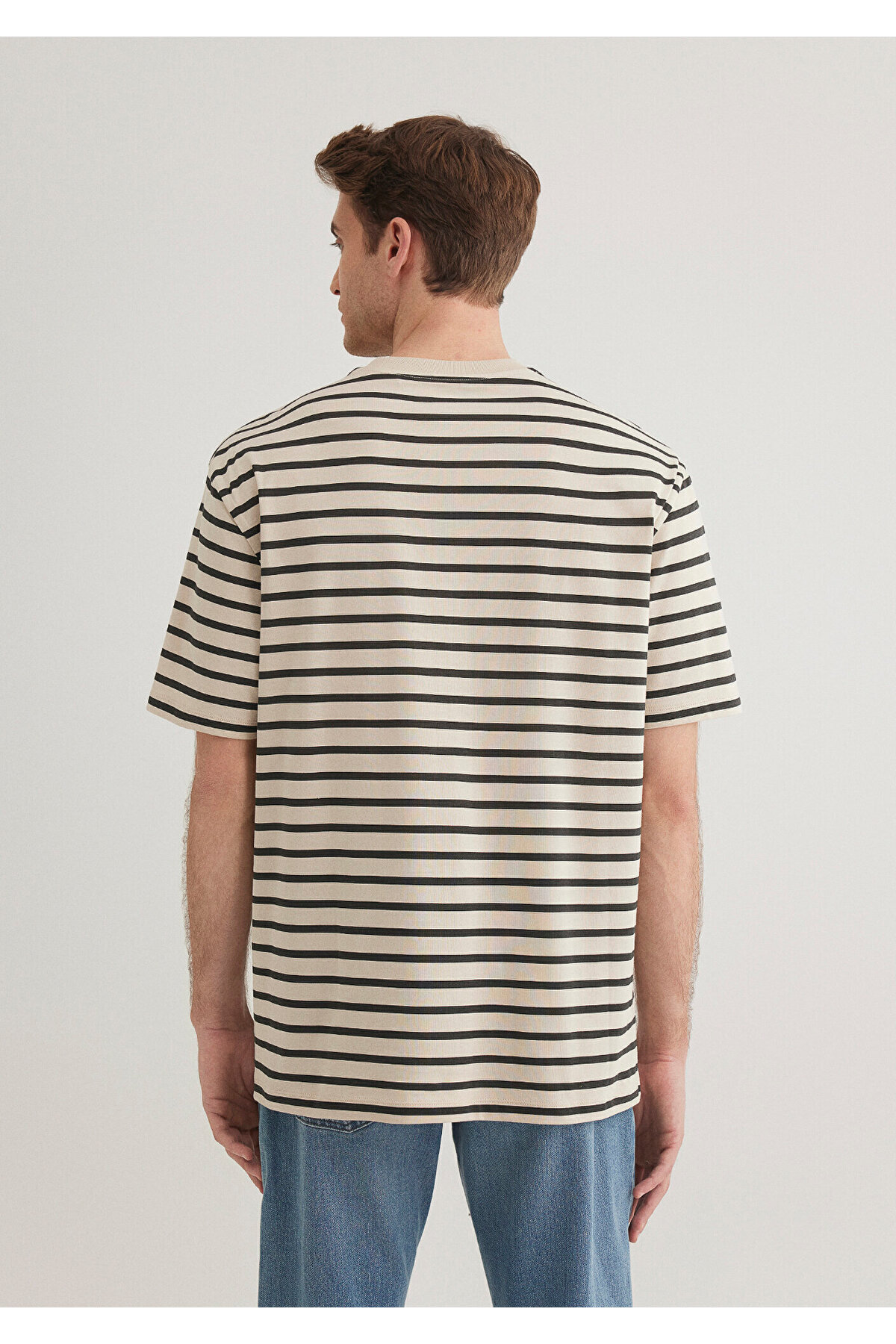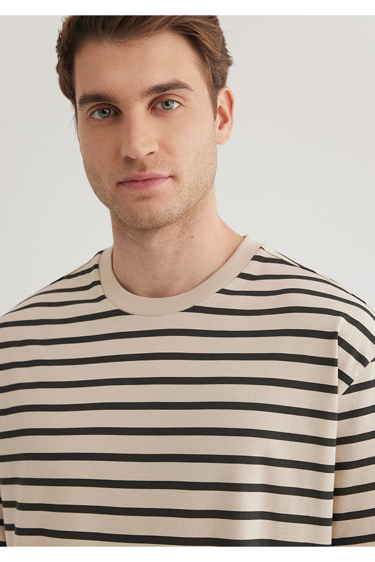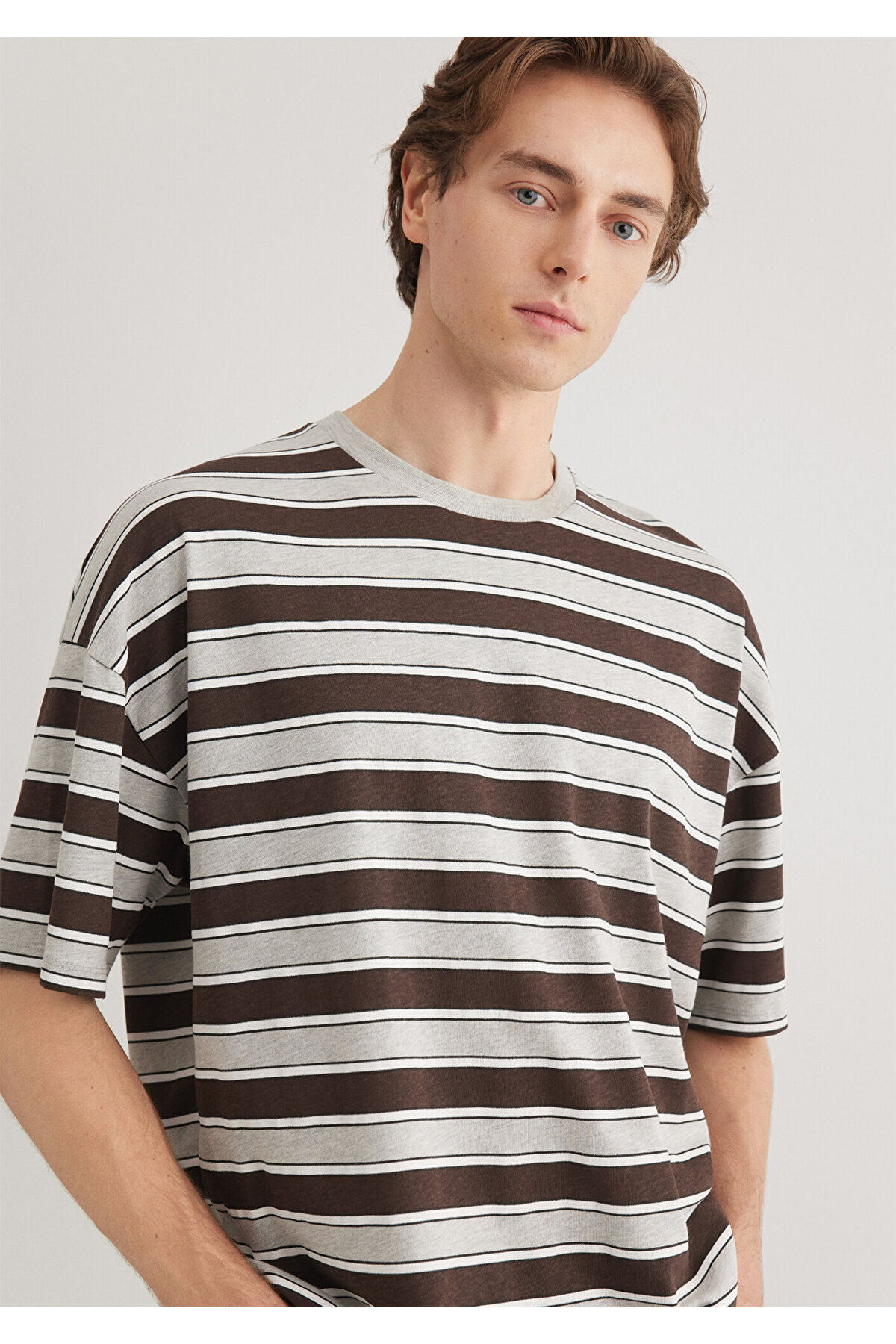 Çizgili Bej Tişört Loose Fit / Bol Rahat Kesim 0612515-70322 Çizgili Bej Tişört Loose Fit / Bol Rahat Kesim 0612515-70322 2XL