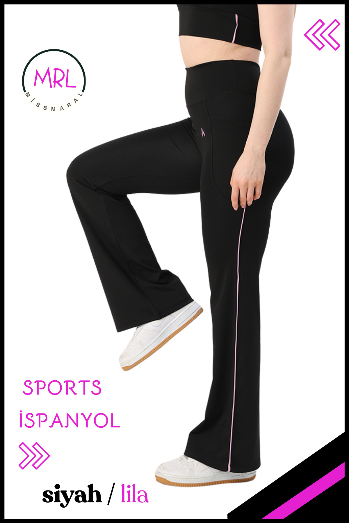 Kadın Tayt Pantolon Likralı Yüksek Bel Toparlayıcı Kumaş Siyah/Lila Şerit Detaylı Cepli 1042 Kadın Tayt Pantolon Likralı Yüksek Bel Toparlayıcı Kumaş Siyah/Lila Şerit Detaylı Cepli 1042 4XL