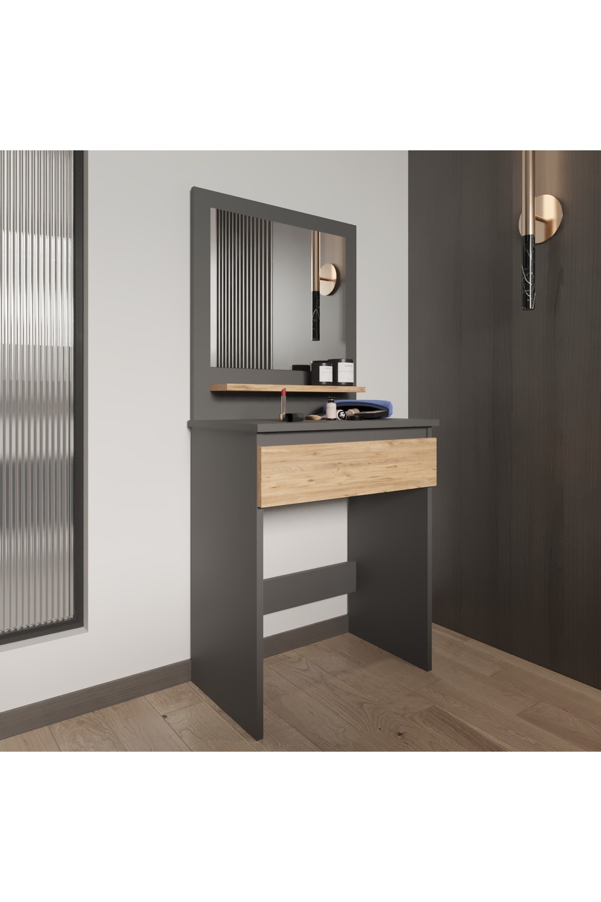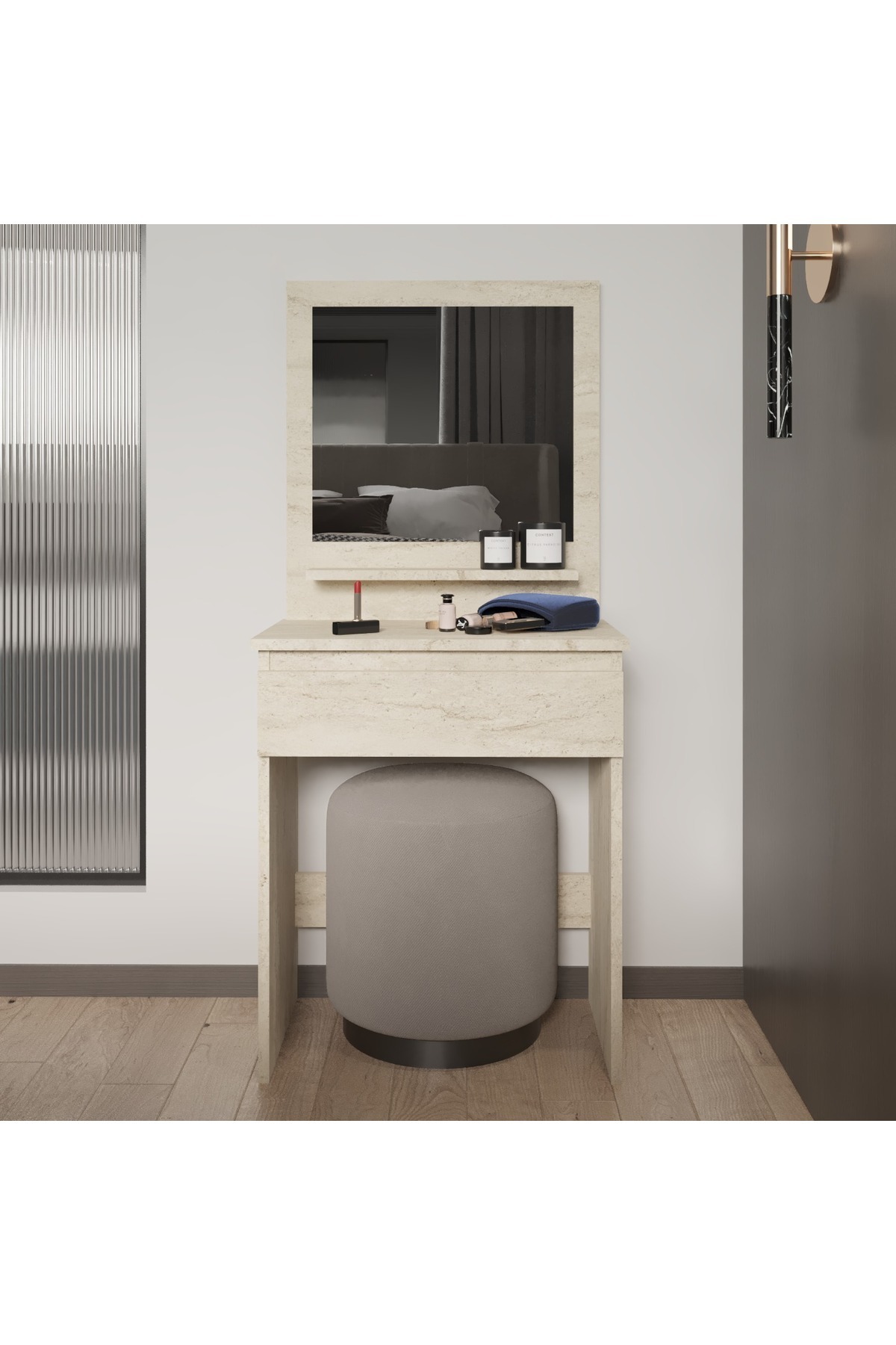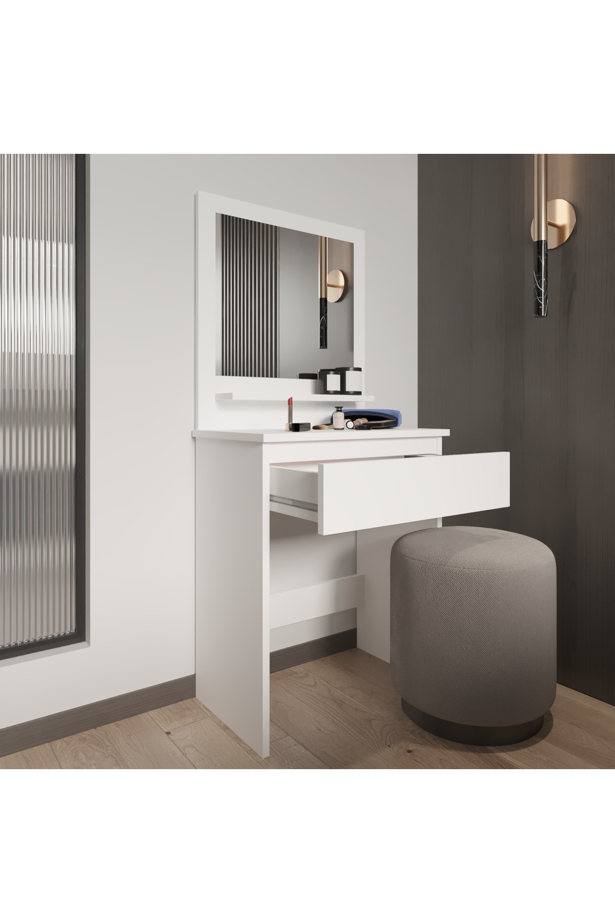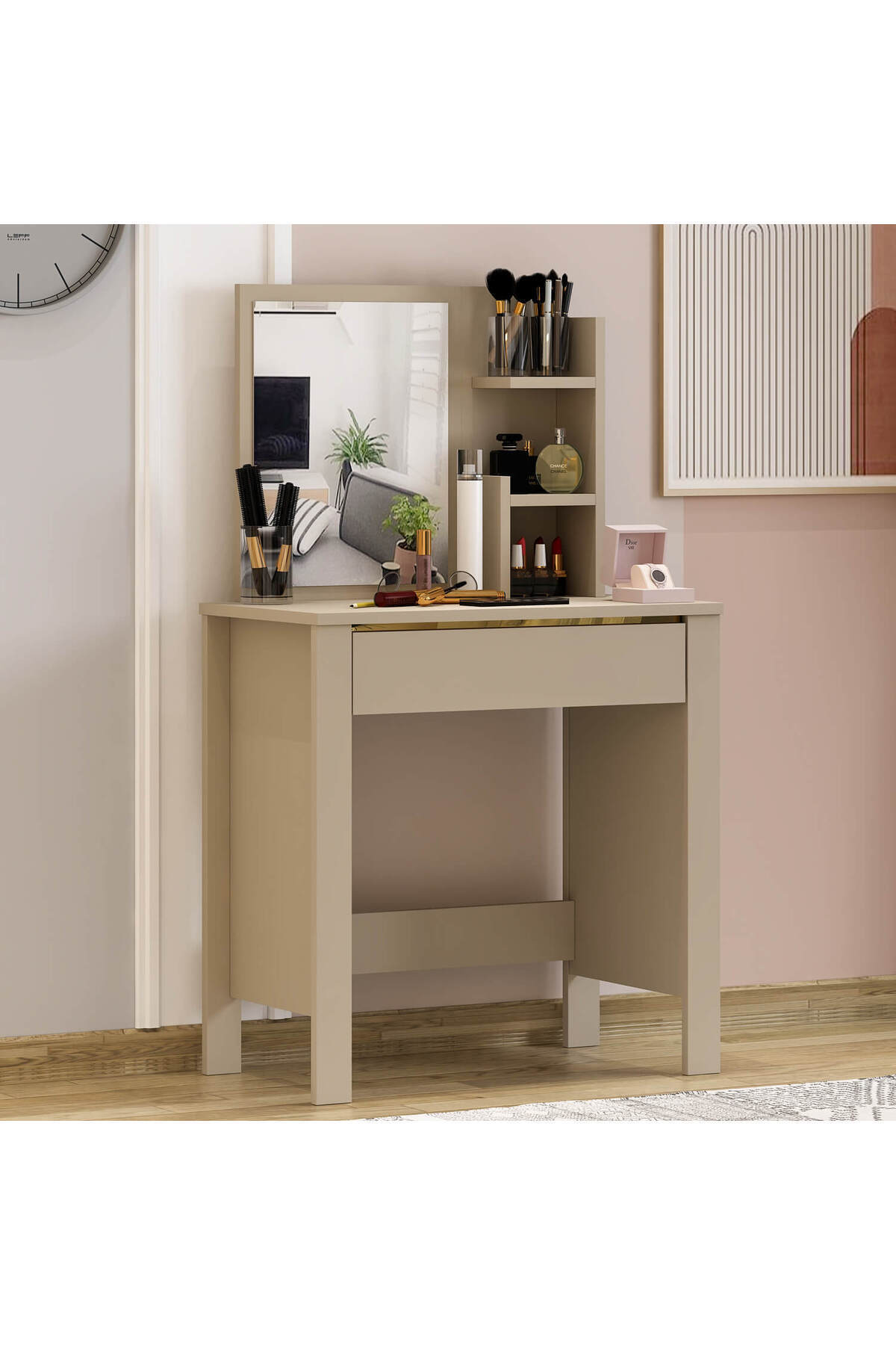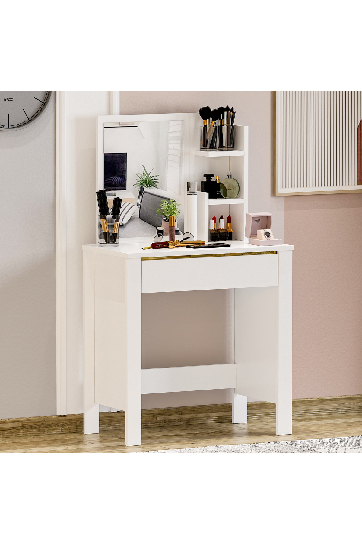 Lunara Makyaj Masası, Raflı, Çekmeceli, Aynalı Lunara Makyaj Masası, Raflı, Çekmeceli, Aynalı T-DCM-MKYJ-0001-01 تک سایز