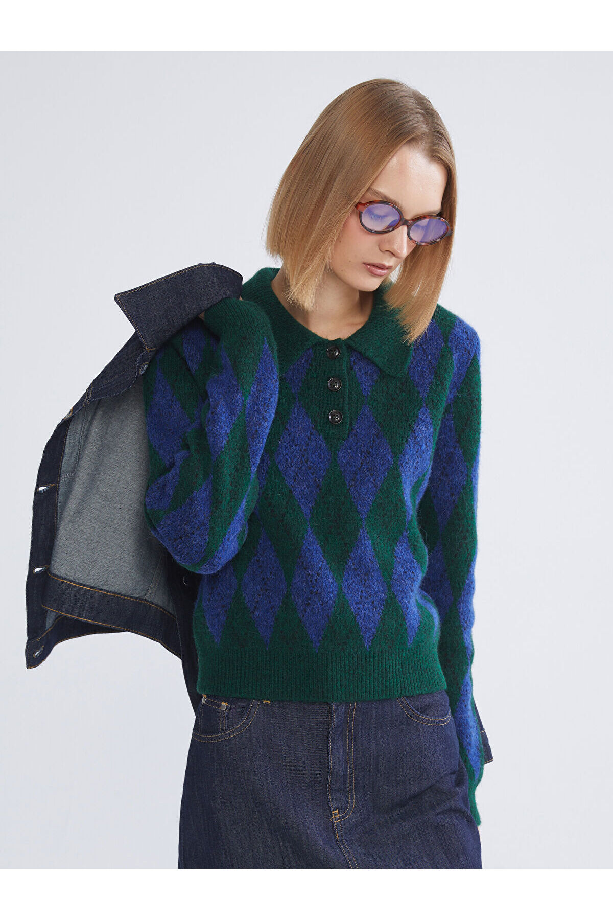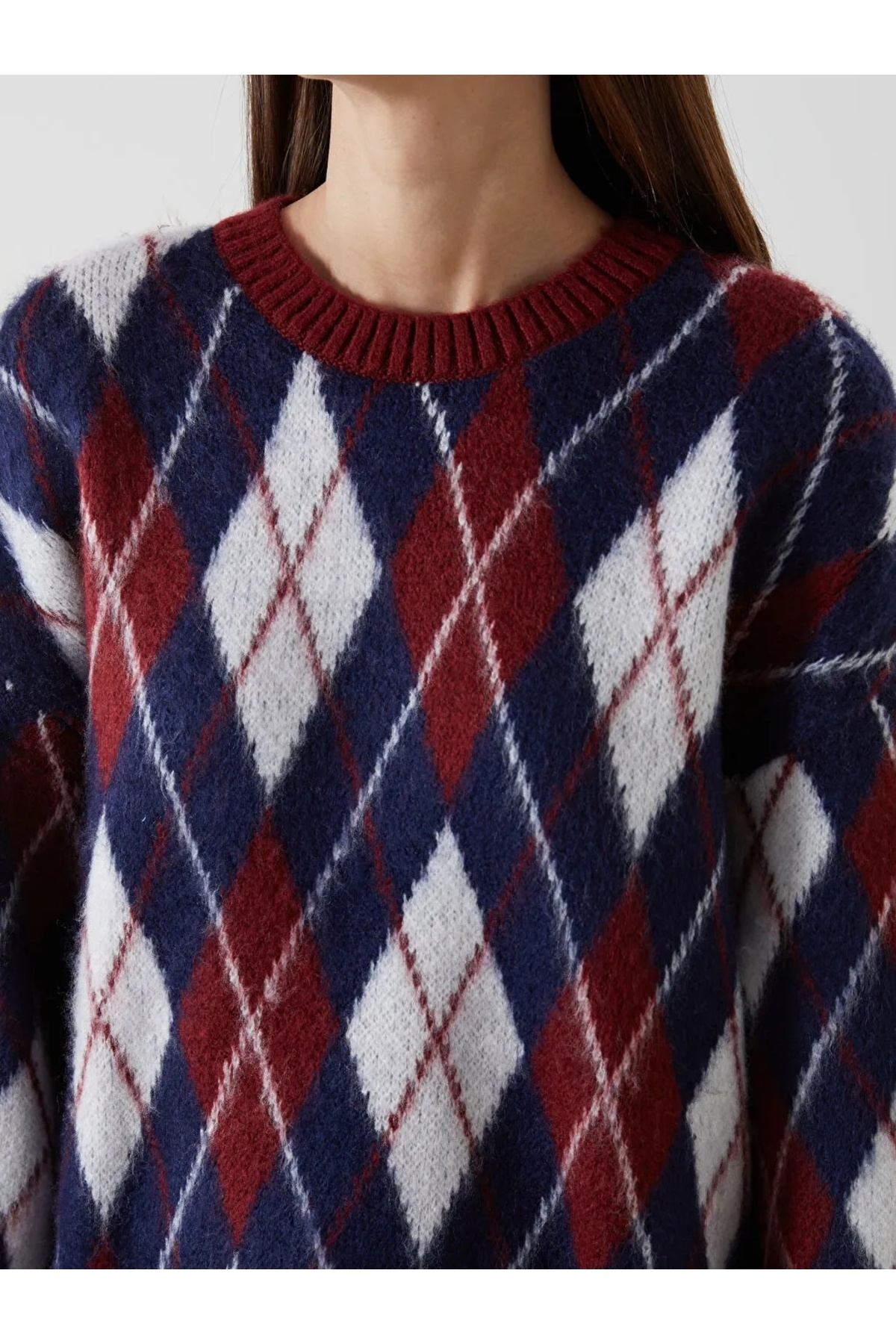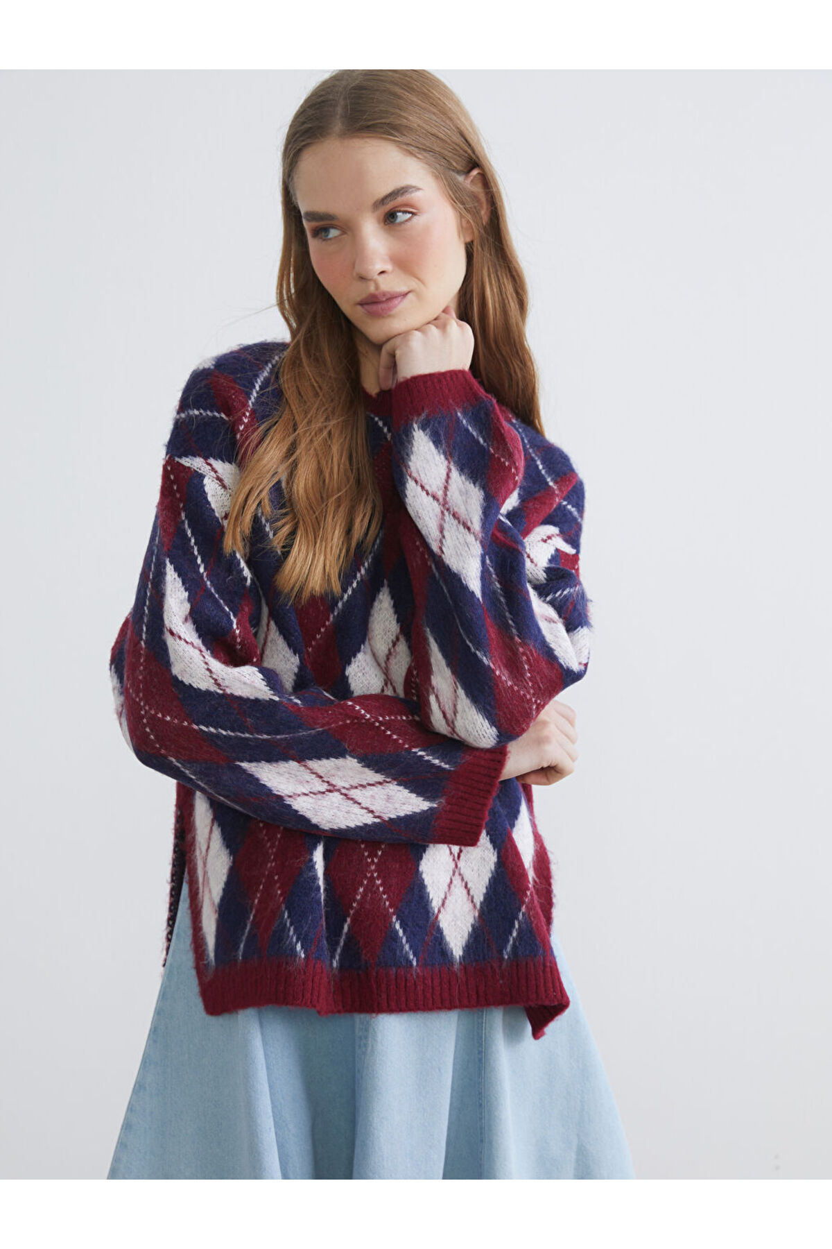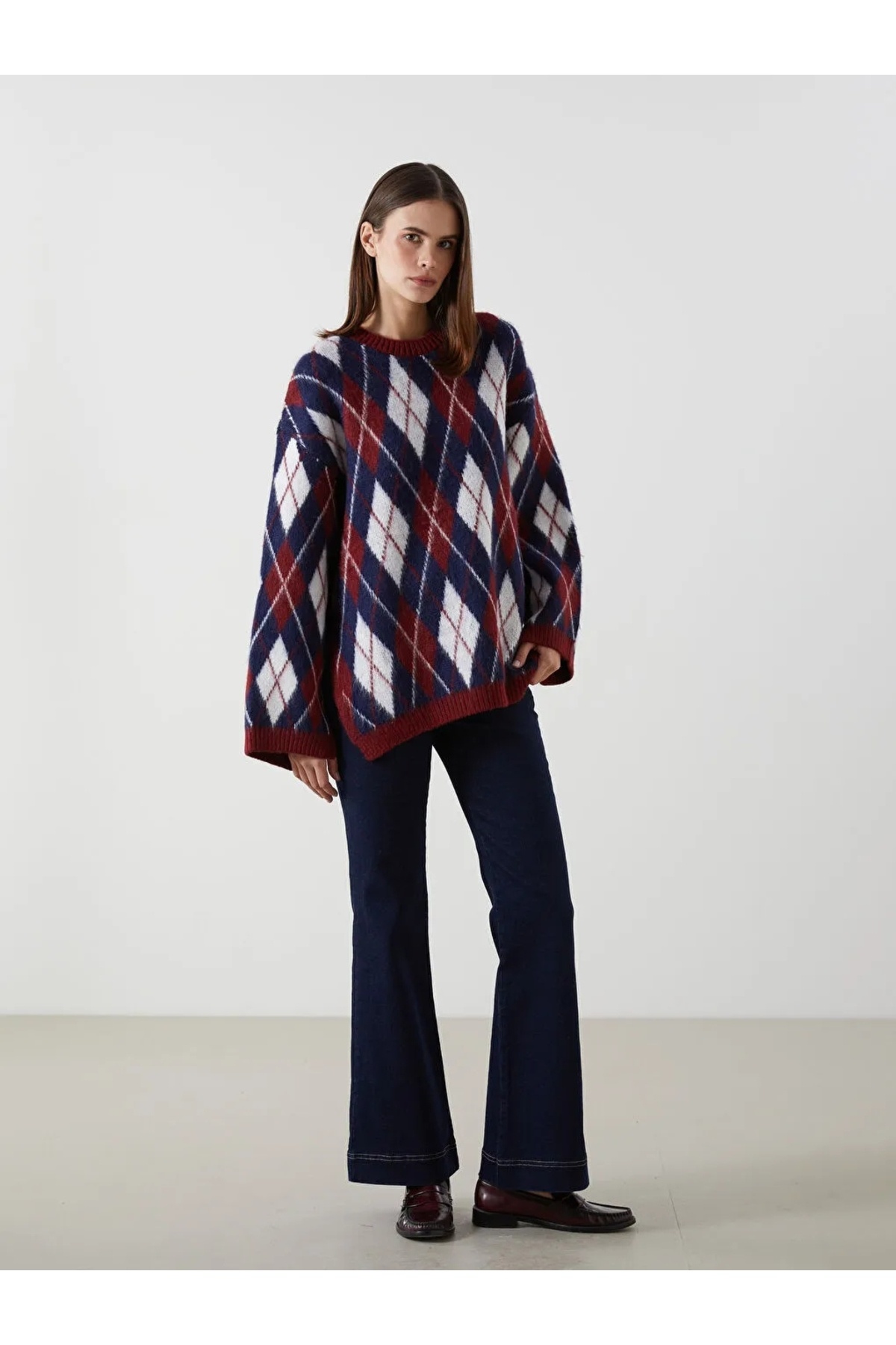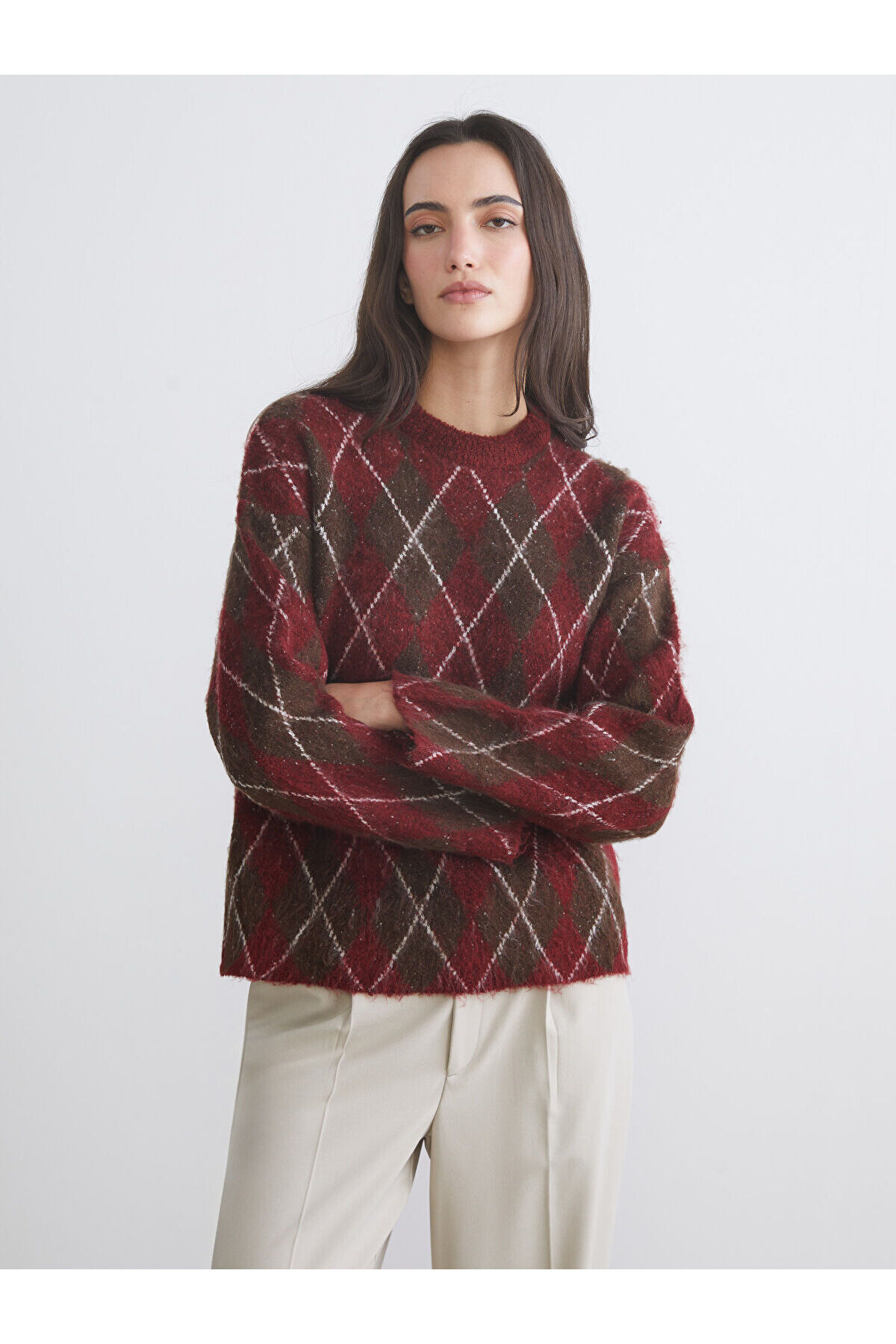 Bisiklet Yaka Baklava Desenli Kadın Triko Kazak Bisiklet Yaka Baklava Desenli Kadın Triko Kazak LIVS5MT16Z81 تک سایز