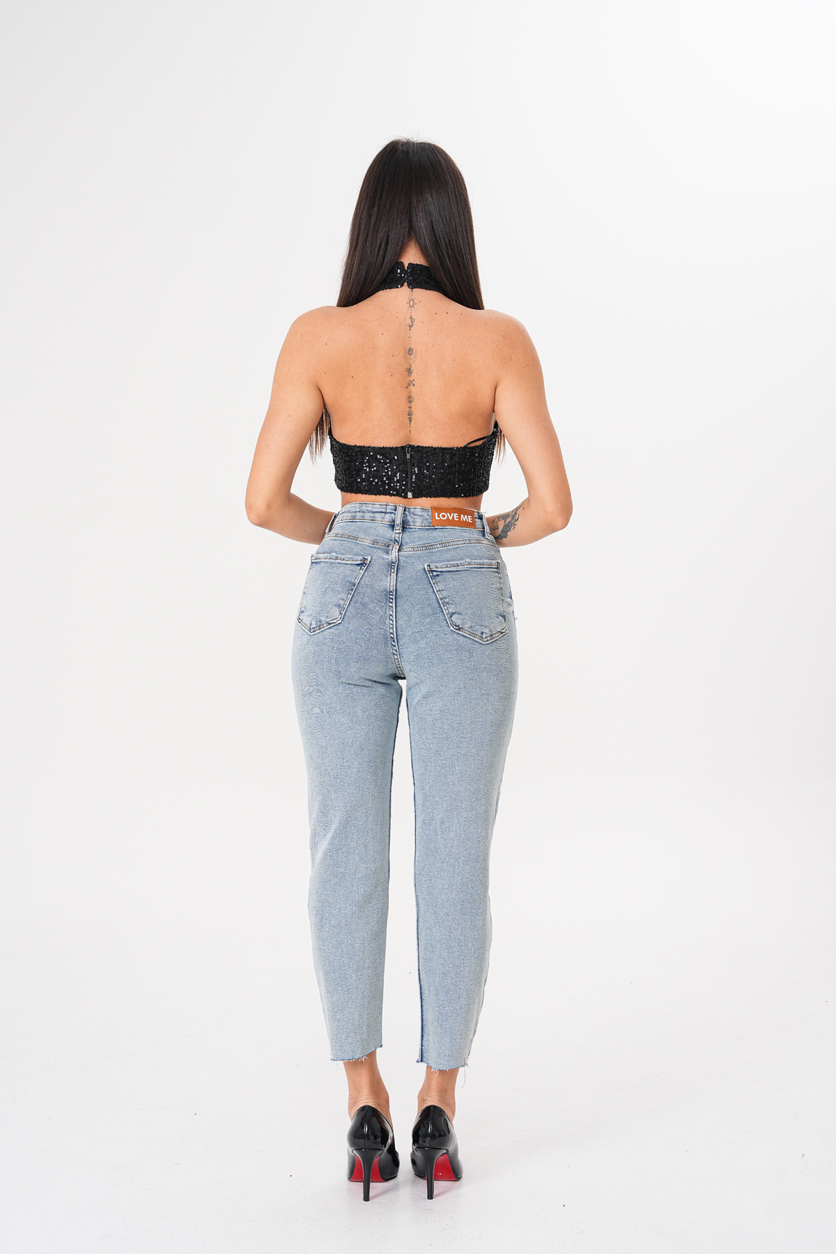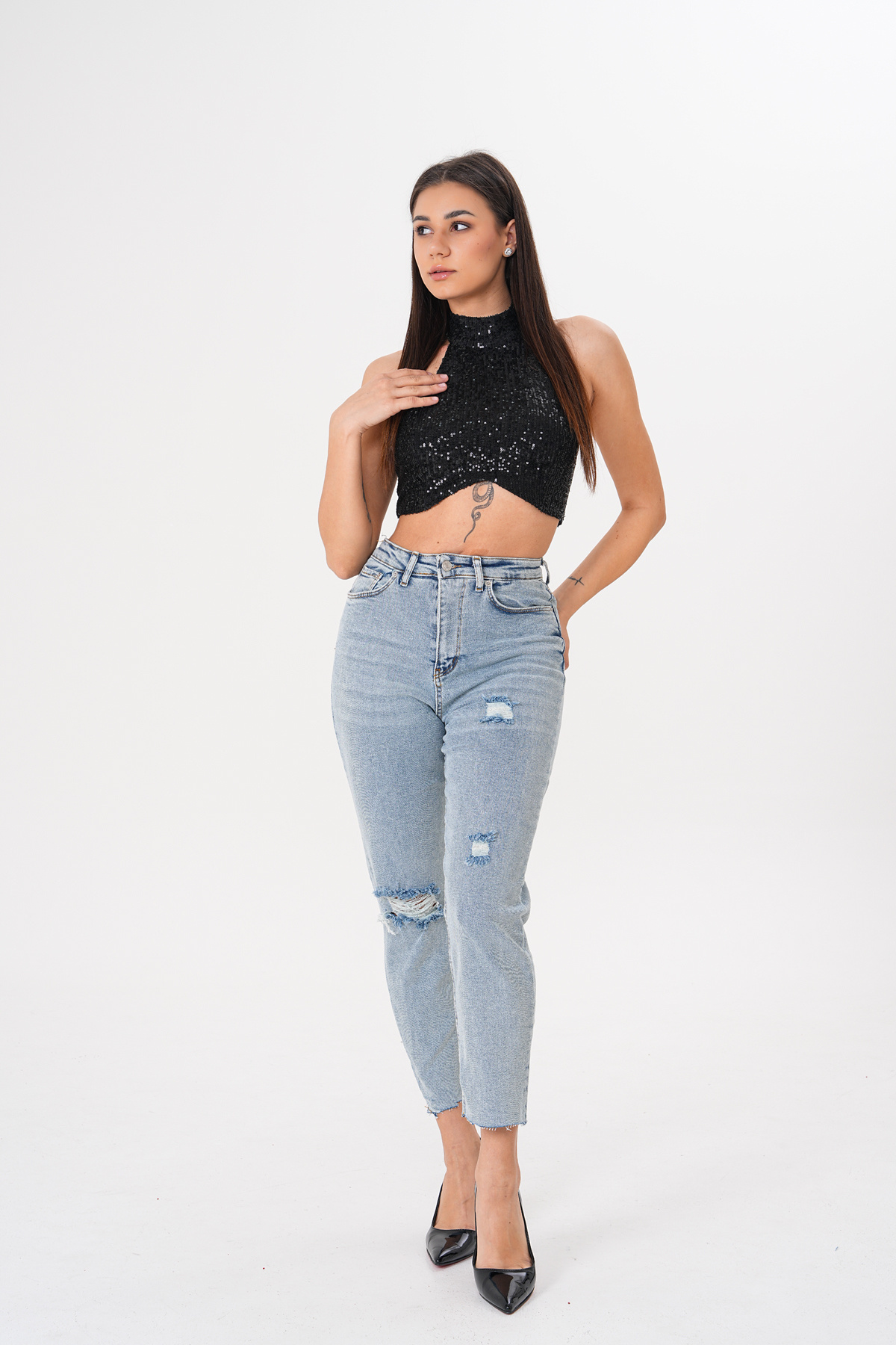 - KADIN AÇIK MAVİ YIRTIK DETAYLU MOM KOT PANTOLON - KADIN AÇIK MAVİ YIRTIK DETAYLU MOM KOT PANTOLON JN0135 40