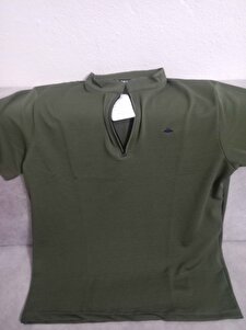 Haki Kolej Yaka Yarım Fermuarlı Kısa Kollu Tişört- 2408 Haki Kolej Yaka Yarım Fermuarlı Kısa Kollu Tişört- 2408 MRN2023S000197-A 2XL