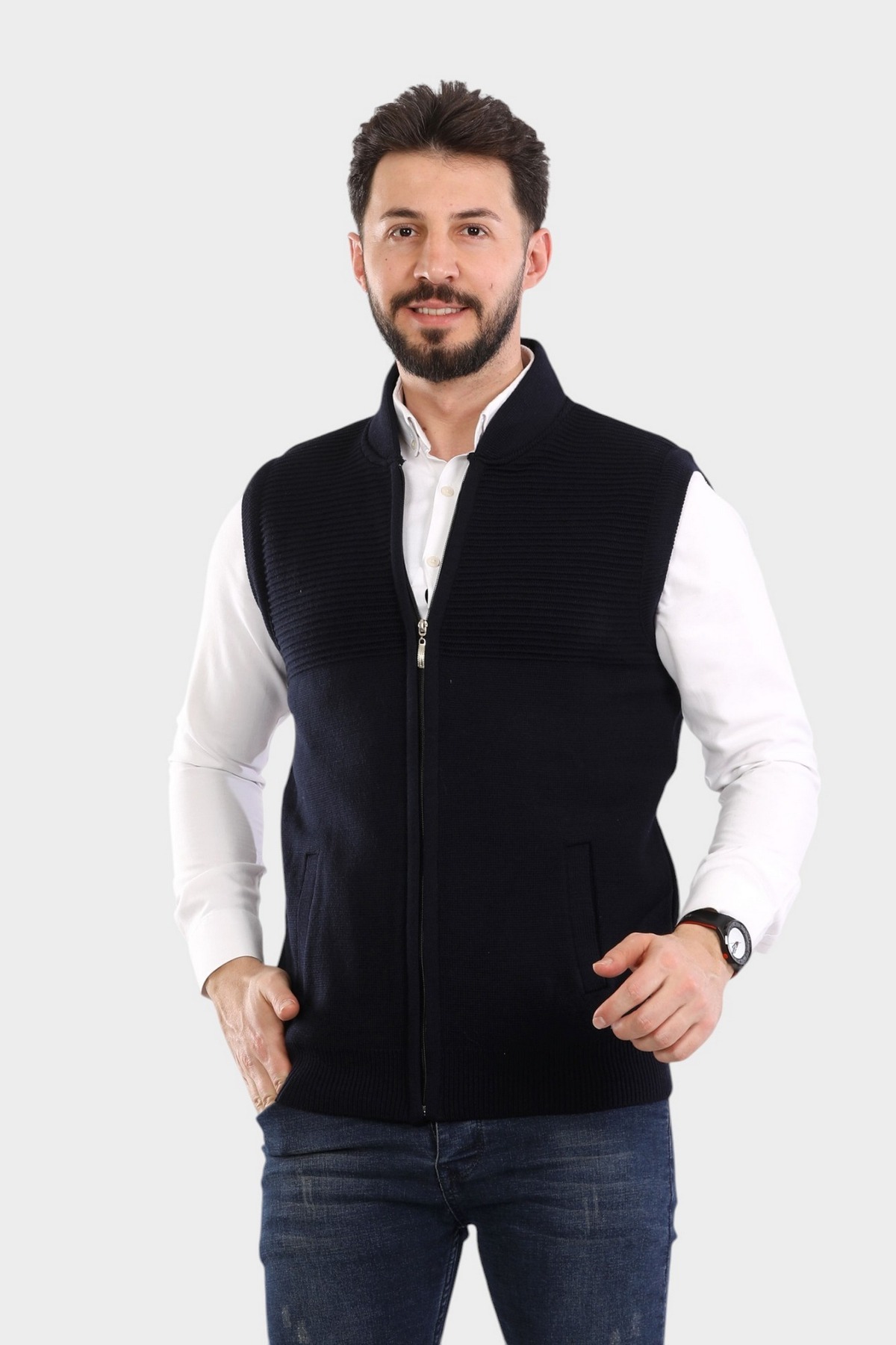 ERKEK LACİVERT ÇELİK ÖKRGÜ TRİKO FERMUARLI YELEK CEPLİ BABA YELEK ERKEK LACİVERT ÇELİK ÖKRGÜ TRİKO FERMUARLI YELEK CEPLİ BABA YELEK GOFRALIYELEK XL
