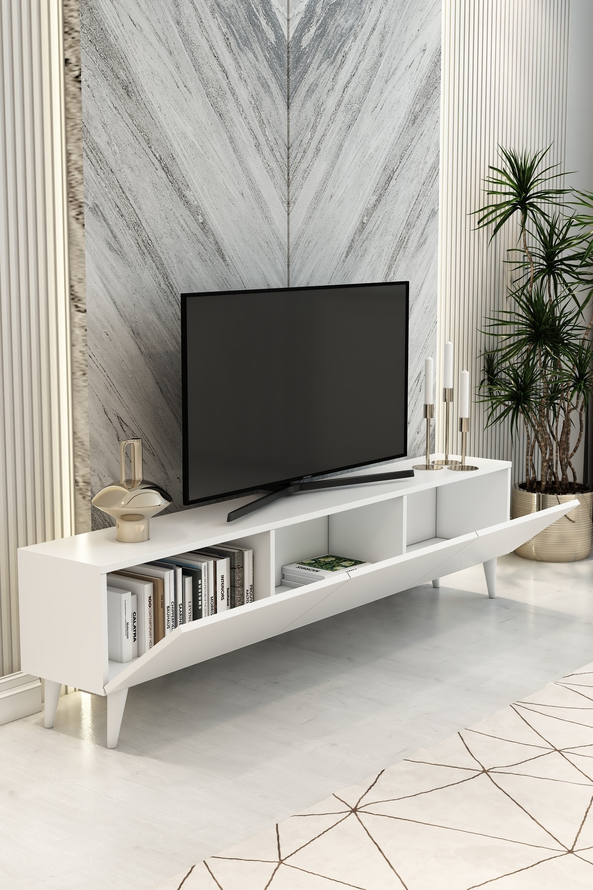Model Vera 180 cm Beyaz 3 Kapaklı TV Ünitesi – Modern TV Sehpası | Televizyon Konsolu Model Vera 180 cm Beyaz 3 Kapaklı TV Ünitesi – Modern TV Sehpası | Televizyon Konsolu 180 cm 3 kapak تک سایز