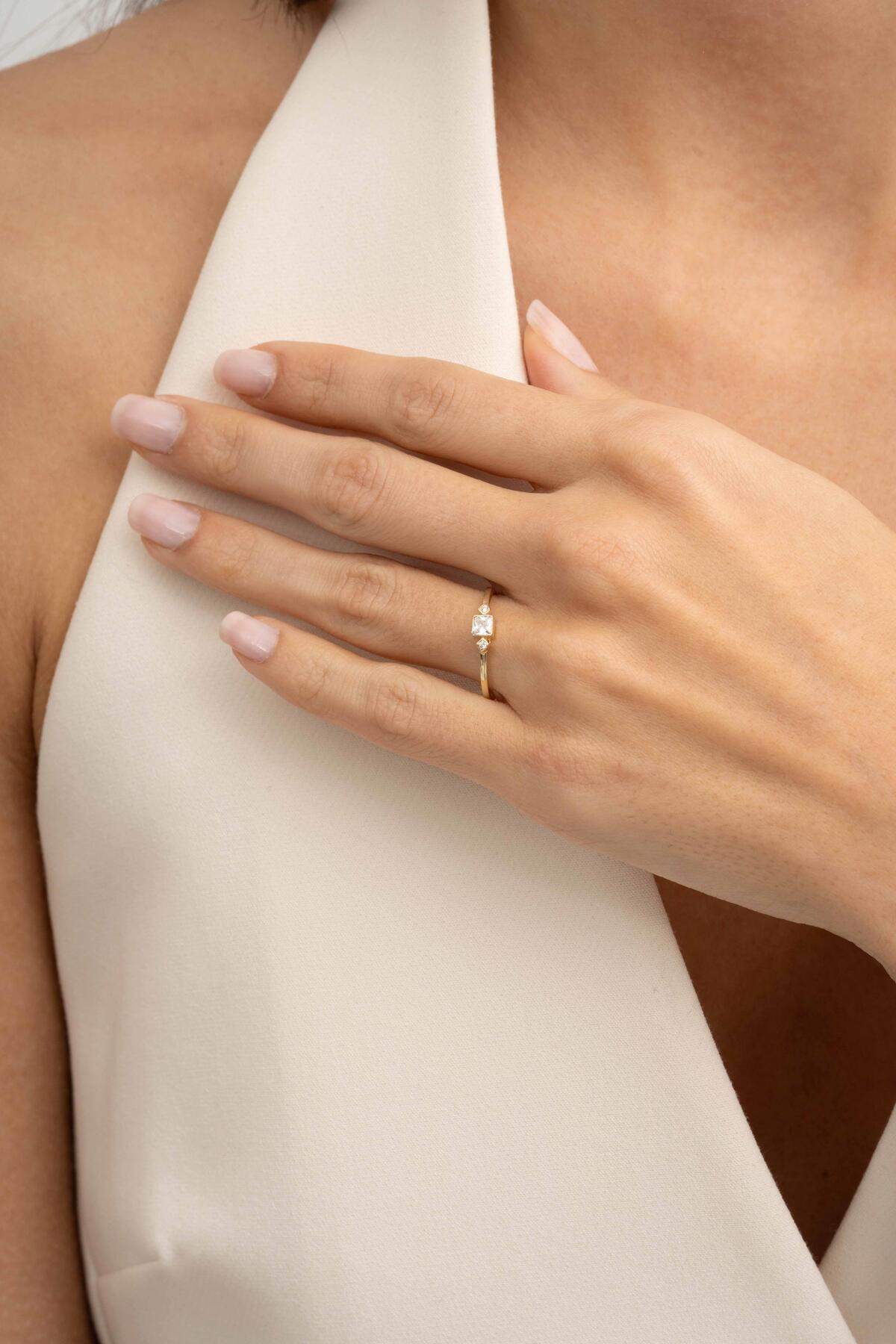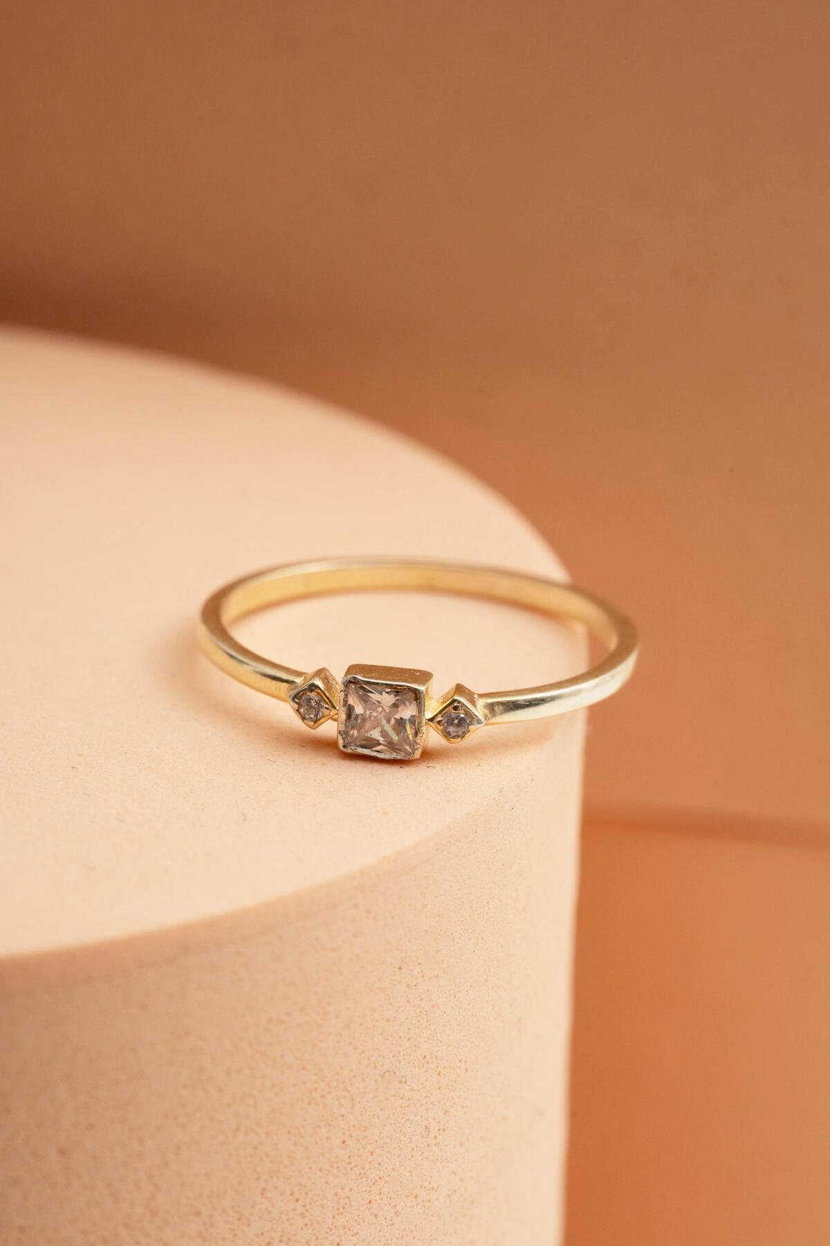 Kare Taşlı Altın Kaplama Gümüş İnce Yüzük 5956 Kare Taşlı Altın Kaplama Gümüş İnce Yüzük 5956 MR5956 20