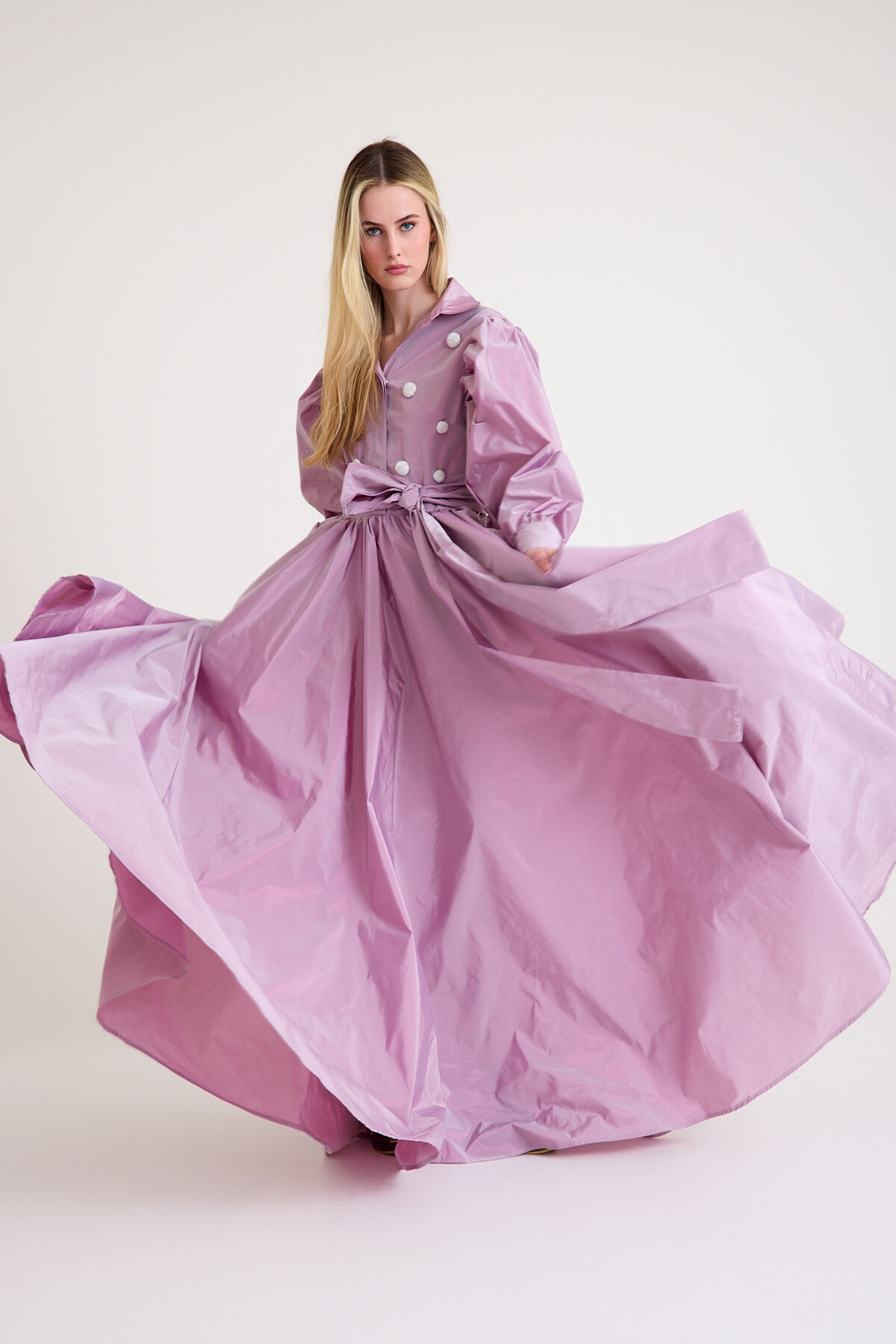 Balon Kollu & Ön Bedeni İşleme Detaylı Açık Lila İpek Tafta Gömlek Elbise Balon Kollu & Ön Bedeni İşleme Detaylı Açık Lila İpek Tafta Gömlek Elbise RM-08 46