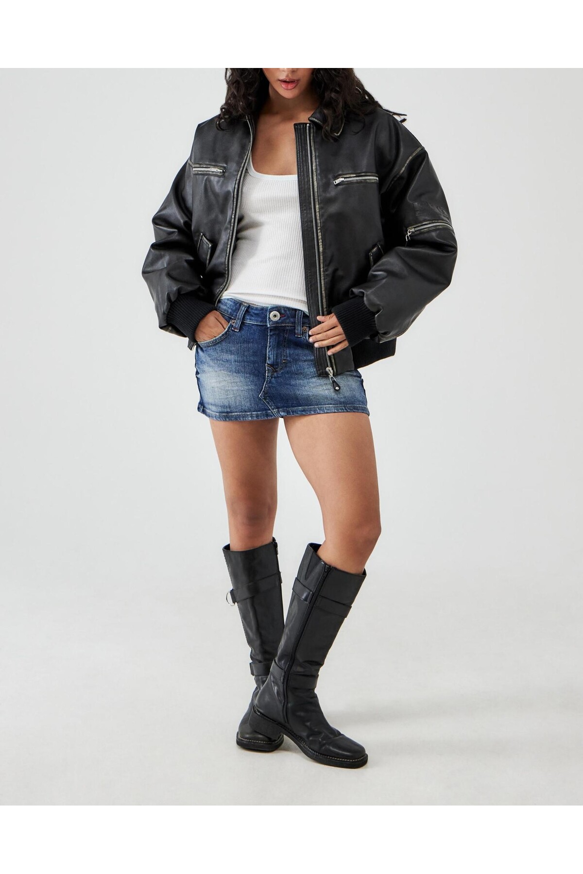 Gri Renk Denim Mini Etek Gri Renk Denim Mini Etek DenimDantelDetaylıMiniEtek 2XL