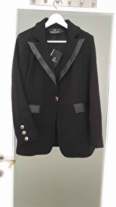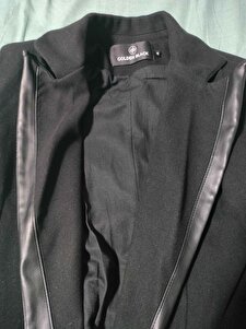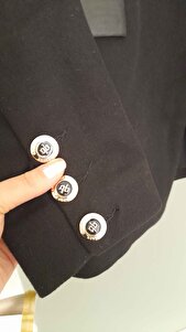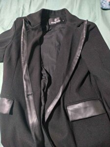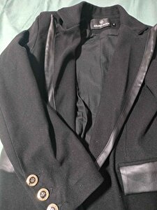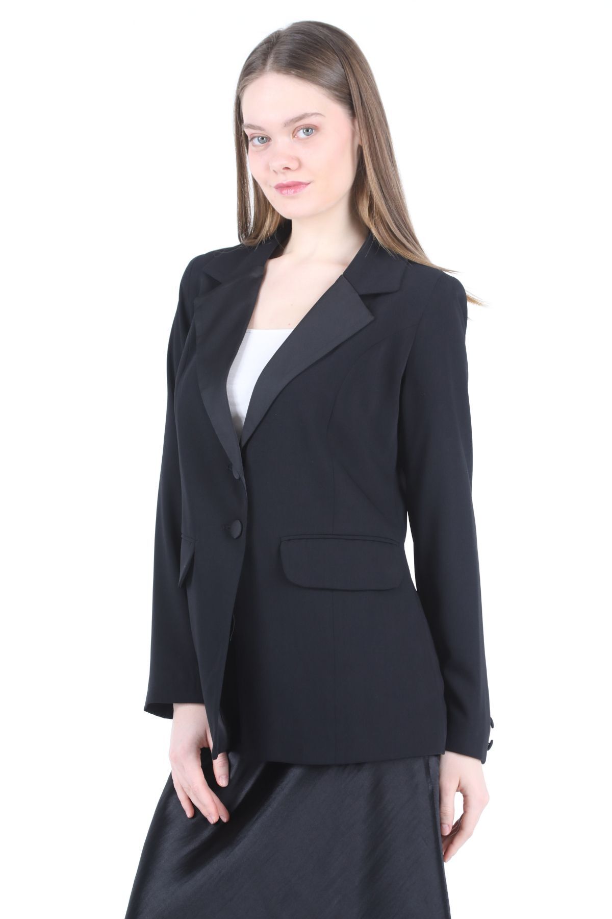 Kadın Siyah Blazer Ceket Deri Detaylı Kadın Siyah Blazer Ceket Deri Detaylı C5762 40