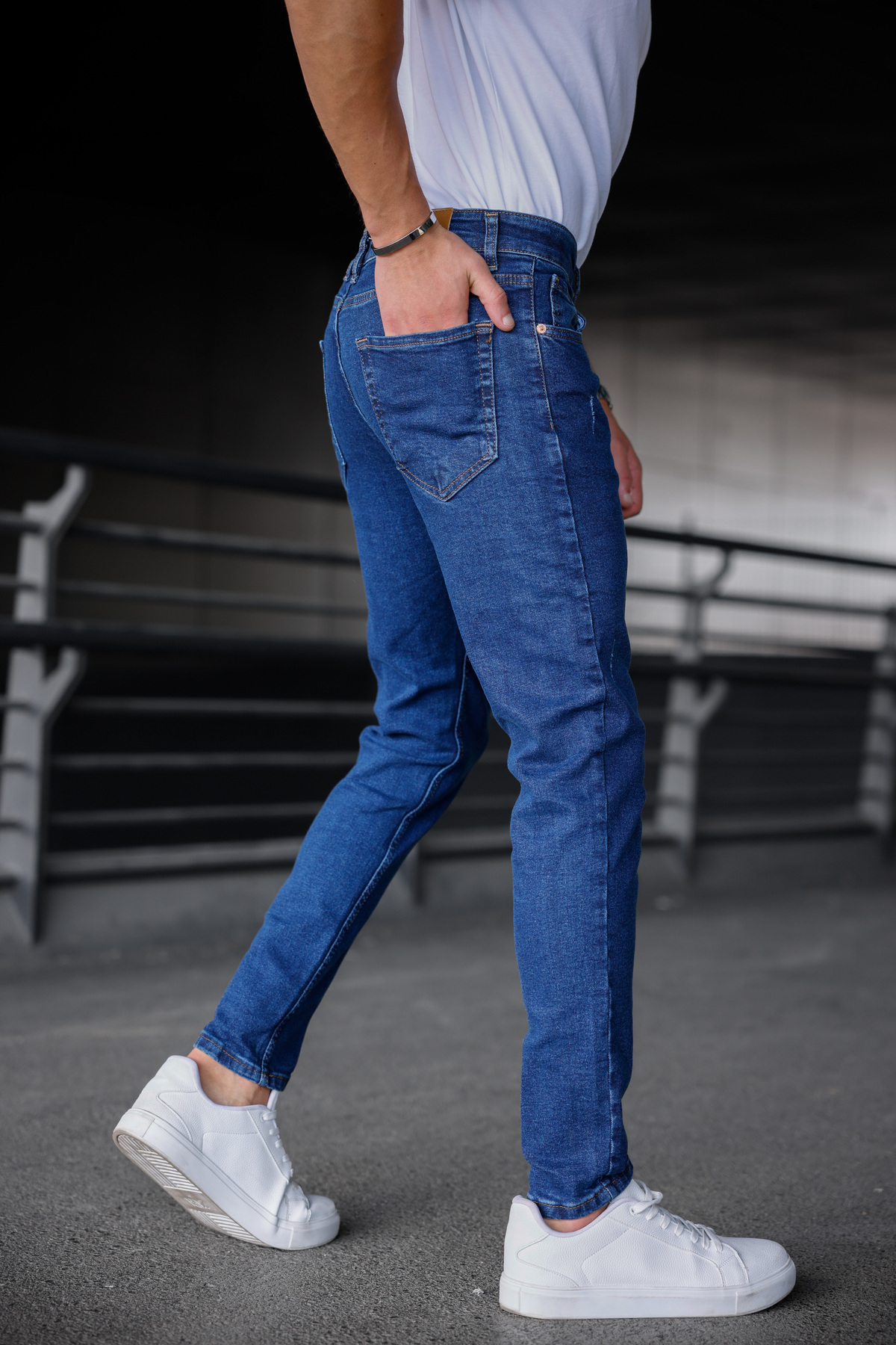 Erkek Mavi Slim Fit Lazerli Jean Pantolon Erkek Mavi Slim Fit Lazerli Jean Pantolon SJ-124 38
