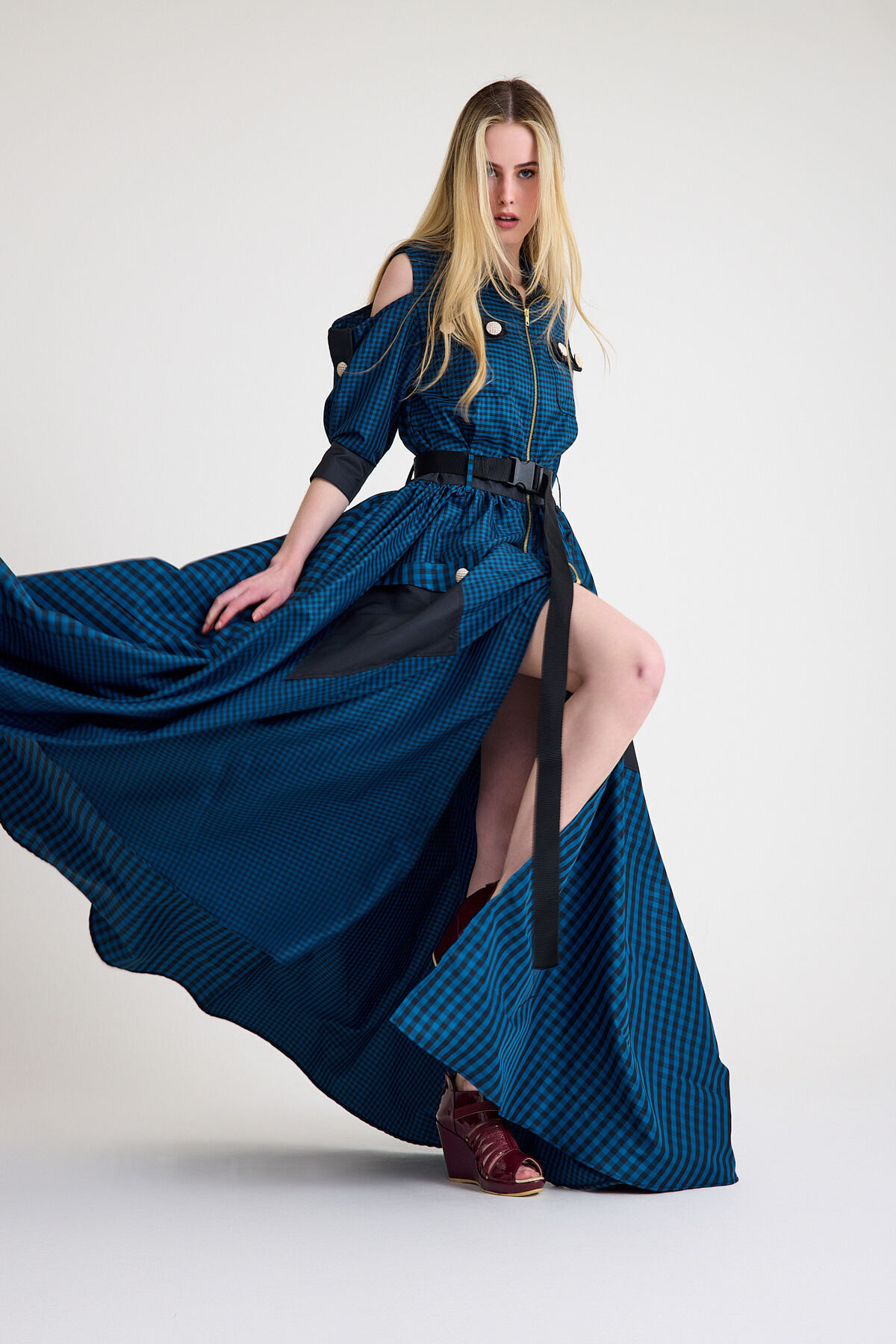 Önden Fermuarlı & Utility Detaylı Straplez İpek Tafta Maxi Elbise Önden Fermuarlı & Utility Detaylı Straplez İpek Tafta Maxi Elbise RM-019 36