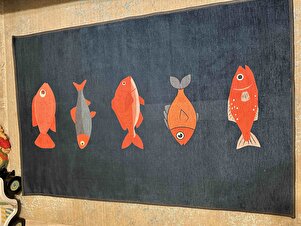 Renkli Balık Desenli Art Deko Dokuma Tabanlı Dijital Kaymaz Salon Halısı Yıkanabilir Mutfak Halısı Renkli Balık Desenli Art Deko Dokuma Tabanlı Dijital Kaymaz Salon Halısı Yıkanabilir Mutfak Halısı BL001 200 x 300