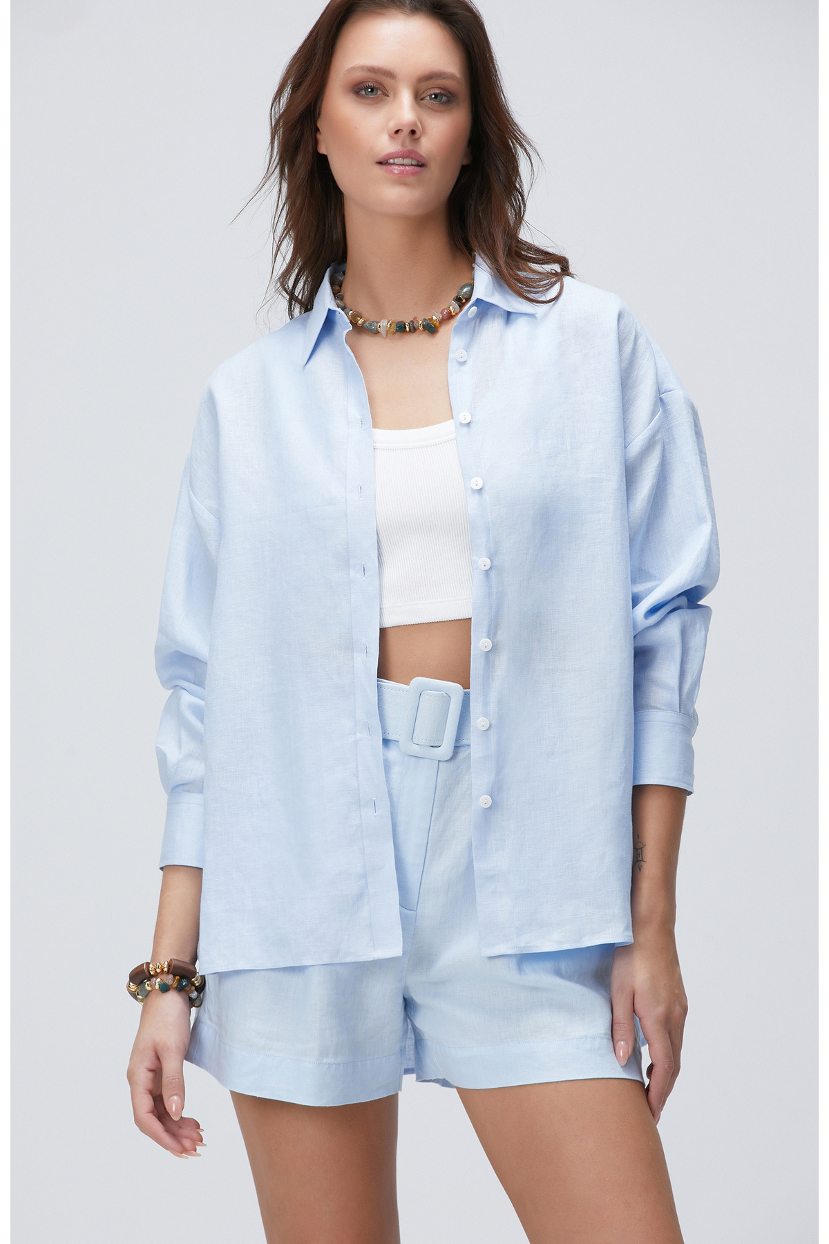 Açık Mavi Keten Gömlek Açık Mavi Keten Gömlek 1094137 XL