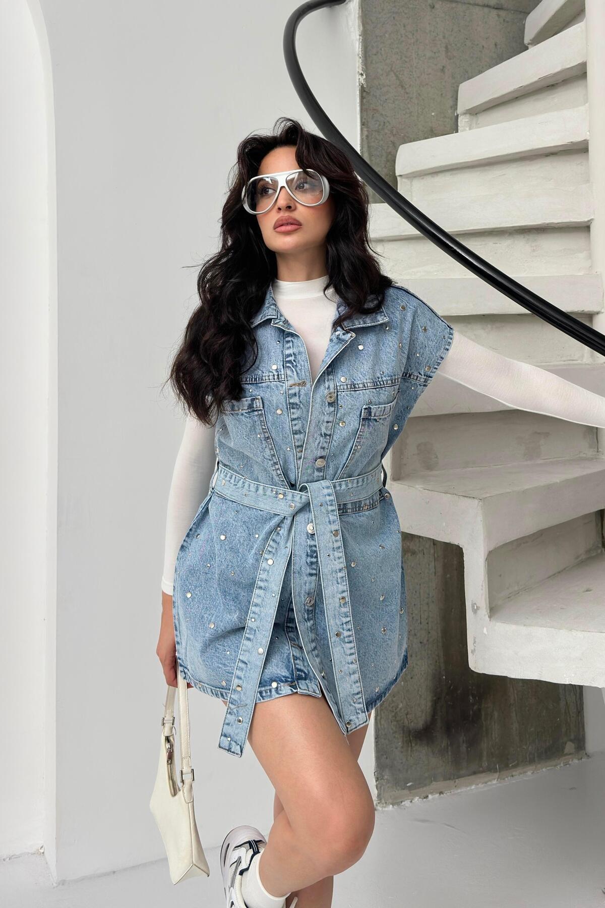 Kadın Lacivert Gümüş Zımba Detaylı Bel Kuşaklı Premium Jean Denim Tasarım Kot Yelek Kadın Lacivert Gümüş Zımba Detaylı Bel Kuşaklı Premium Jean Denim Tasarım Kot Yelek Ab-denimyelek L