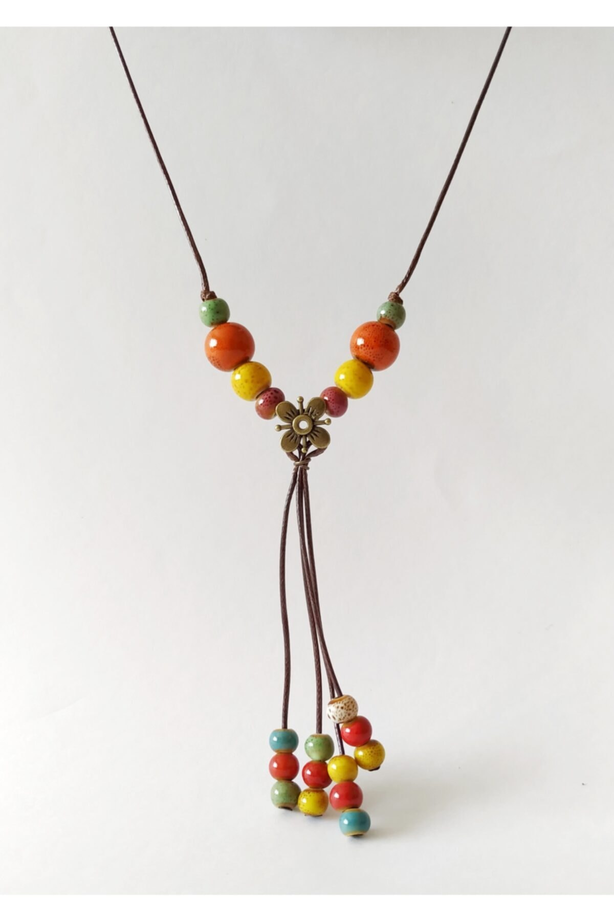 Sevgiliye Hediye Hand Made Seramik Taş Deri ipli Kadın Kolye Sevgiliye Hediye Hand Made Seramik Taş Deri ipli Kadın Kolye VYG41789E 60 cm