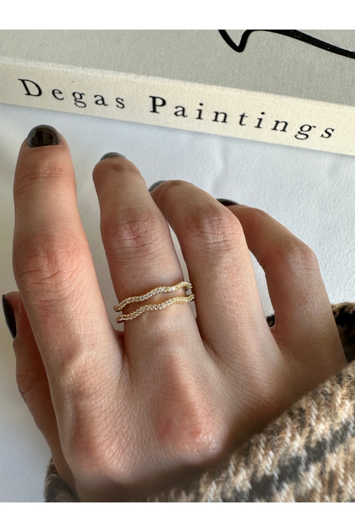 Gümüş Renkli Dalgalı İki Sıra Yüzük Gümüş Renkli Dalgalı İki Sıra Yüzük RB1093 Ayarlanabilir