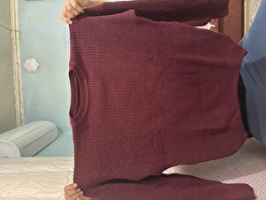 Bordo Bisiklet Yaka Oversize Kadın Triko Kazak Bordo Bisiklet Yaka Oversize Kadın Triko Kazak sparkovrsz22 L