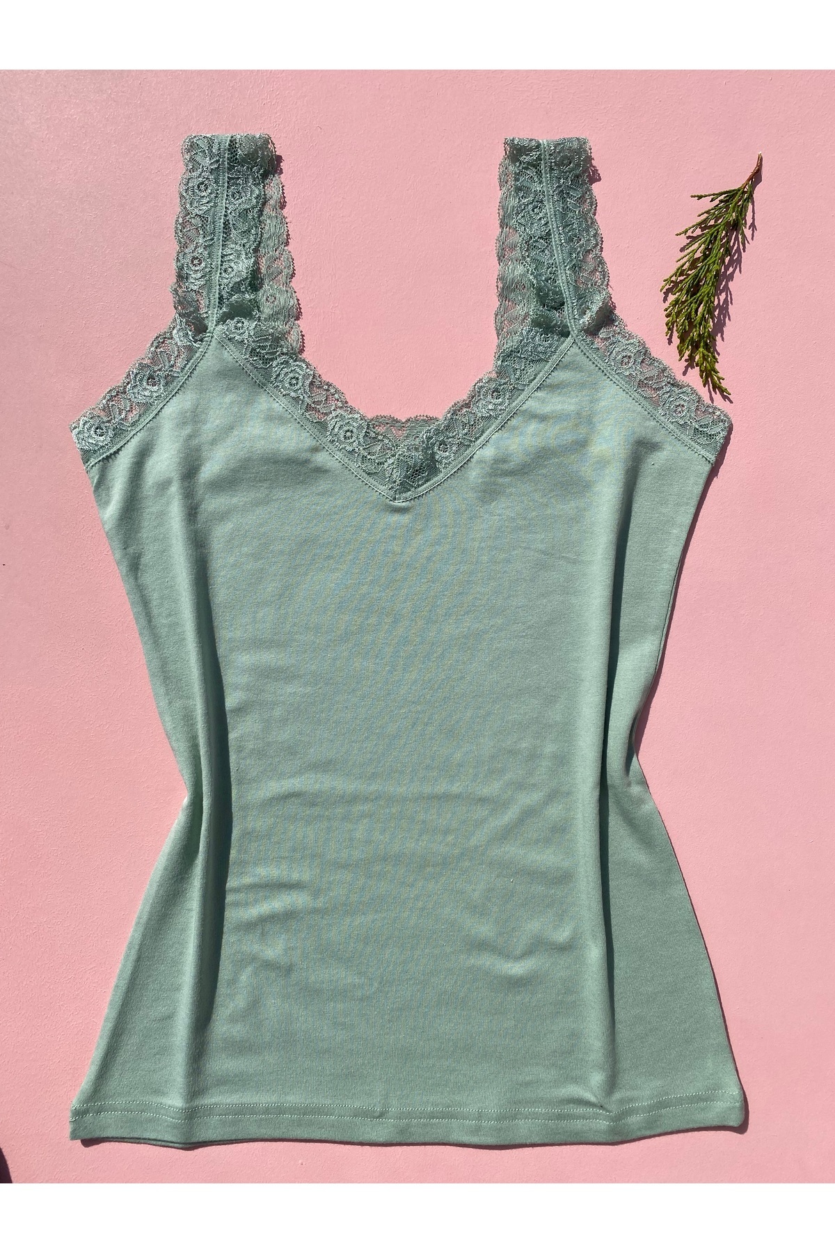 Pamuklu Modal Kumaş Dantel Askılı V Yaka Kutu Ambalajlı 2'li Beyaz Ve Yeşil Kadın Atlet Pamuklu Modal Kumaş Dantel Askılı V Yaka Kutu Ambalajlı 2'li Beyaz Ve Yeşil Kadın Atlet LYN9073 2XL