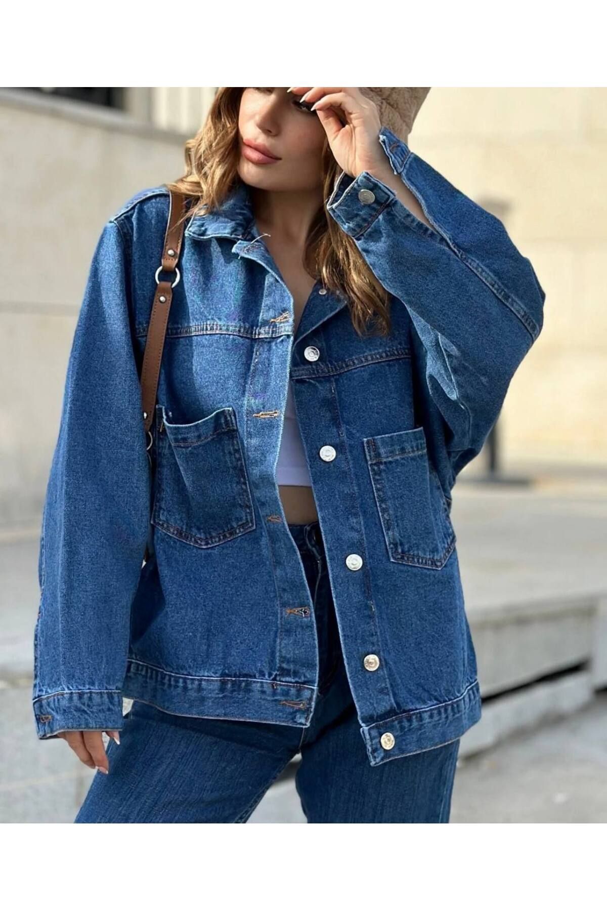 Denim Kumaş Beli Lastikli Kot Ceket Denim Kumaş Beli Lastikli Kot Ceket L