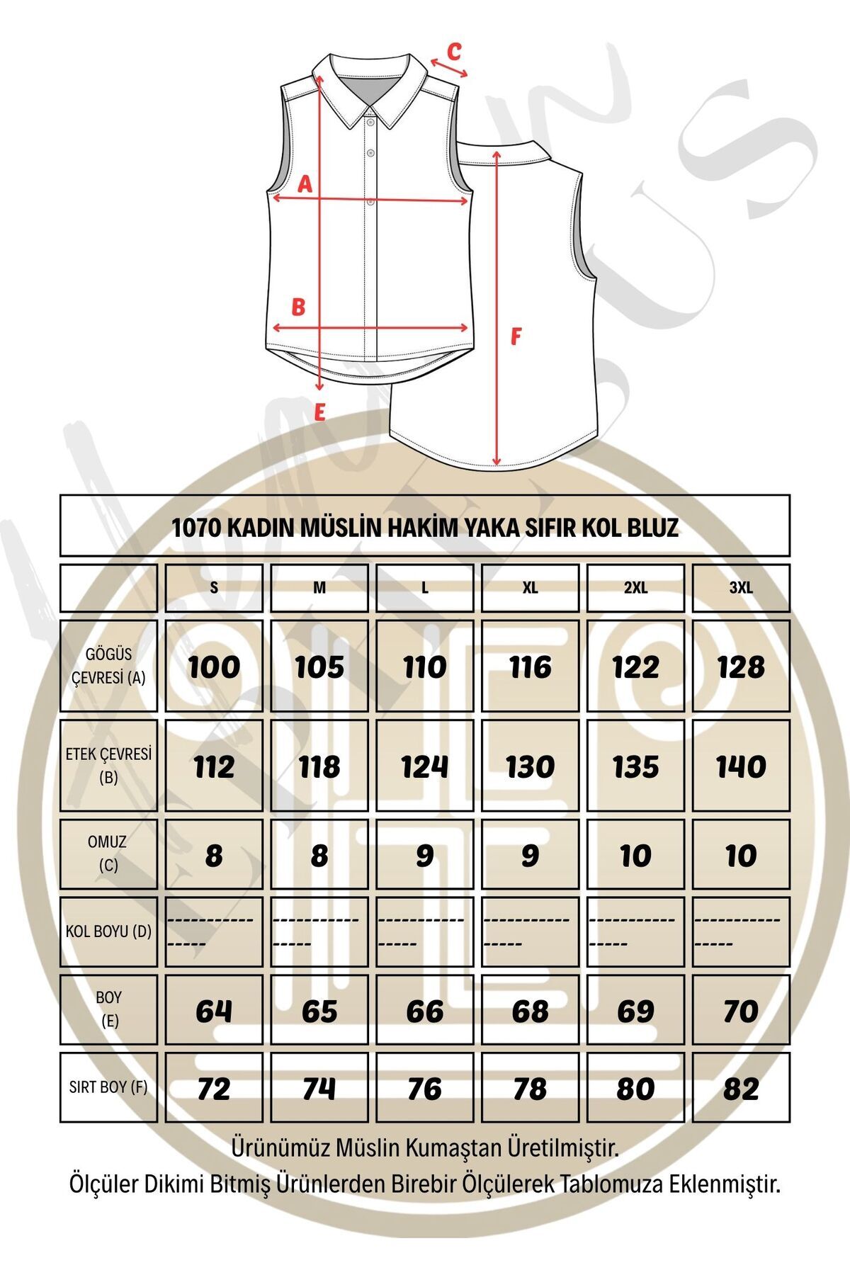 Kadın Bluz - Müslin Hakim Yaka Yarım Pat Kolsuz Bluz - 1070 Kadın Bluz - Müslin Hakim Yaka Yarım Pat Kolsuz Bluz - 1070 3XL