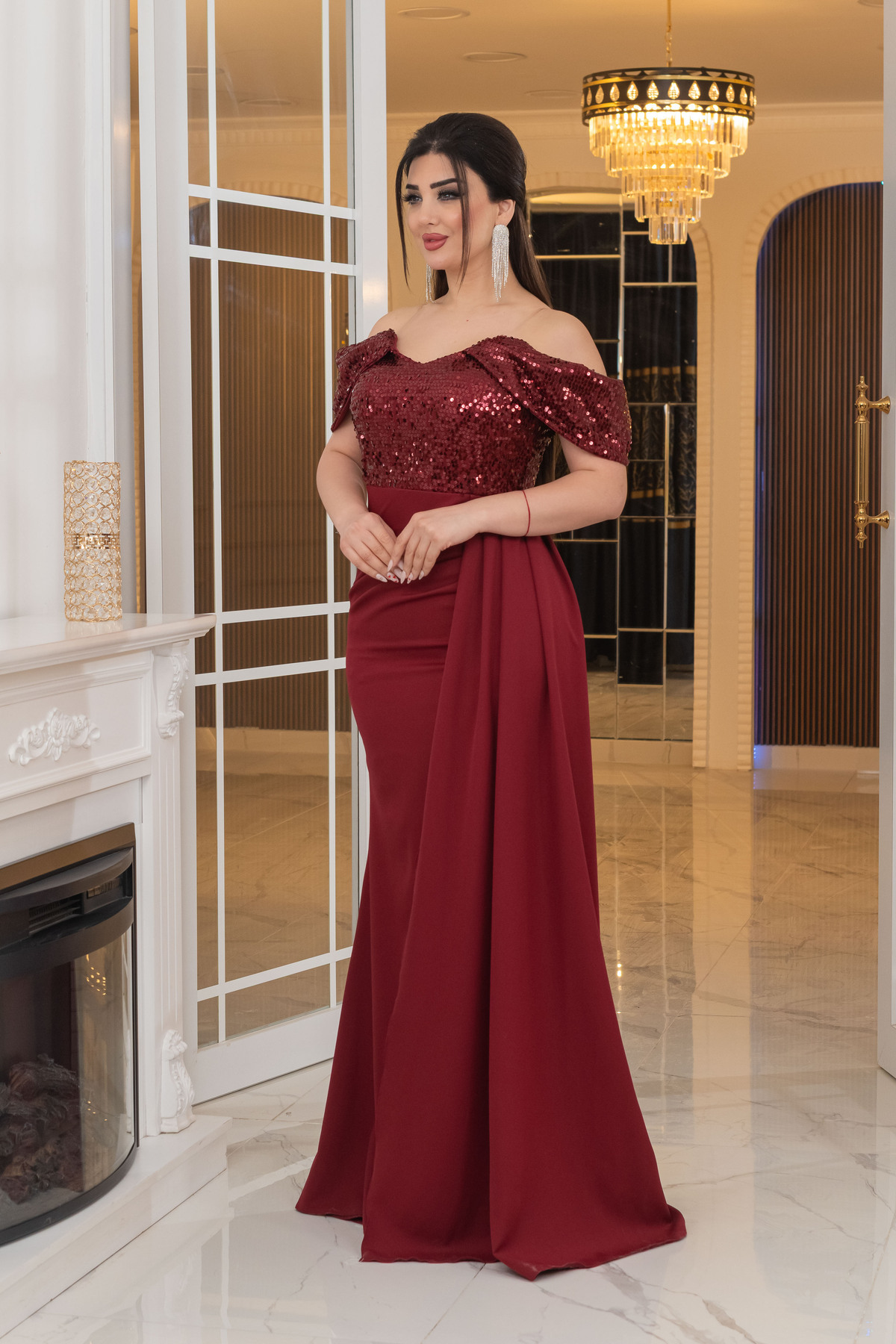 İthal Atlas Tül Payet Tasarım Straplez Dekolteli Yandan Pelerinli Uzun Elbise Abiye İthal Atlas Tül Payet Tasarım Straplez Dekolteli Yandan Pelerinli Uzun Elbise Abiye 8905 48