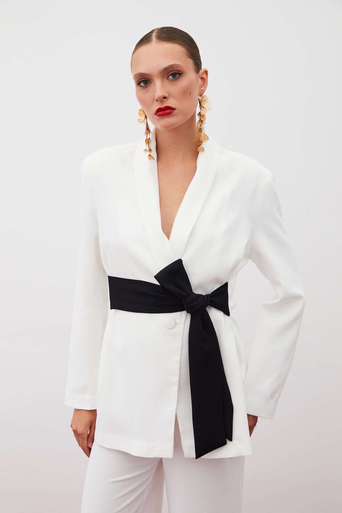 Bağlamalı Jakarlı Ceket - Ekru Bağlamalı Jakarlı Ceket - Ekru STN139KCE1709 42
