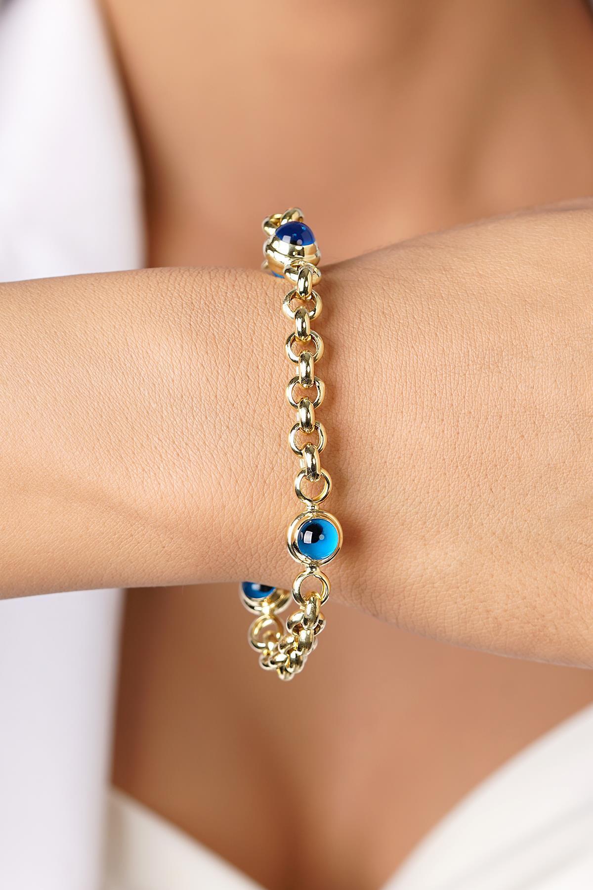 14 Ayar Altın Doch Zincirde Göz Bileklik 14 Ayar Altın Doch Zincirde Göz Bileklik BLK8034 تک سایز