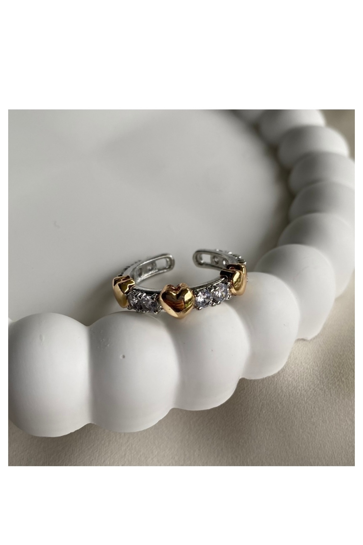 Kalp Detaylı Taşlı Ayarlanabilir Yüzük Kalp Detaylı Taşlı Ayarlanabilir Yüzük GD000690 تک سایز