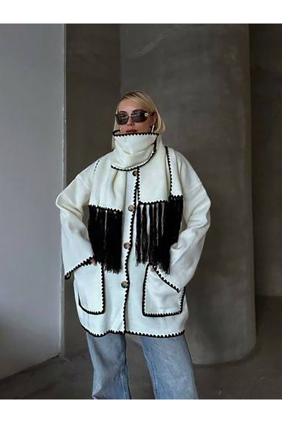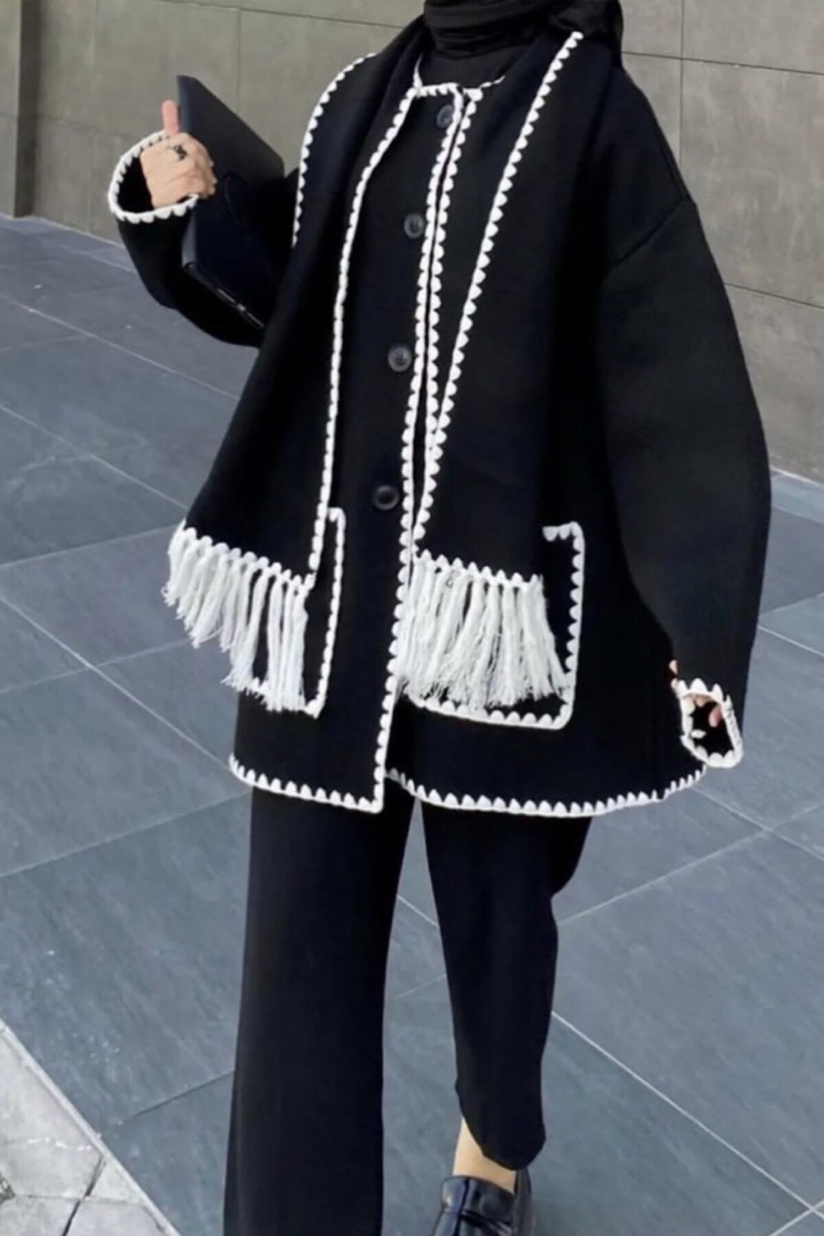 Nakış Detaylı Atkılı Yumuşak Kaşe Hırka Ceket Siyah Nakış Detaylı Atkılı Yumuşak Kaşe Hırka Ceket Siyah 2008 L