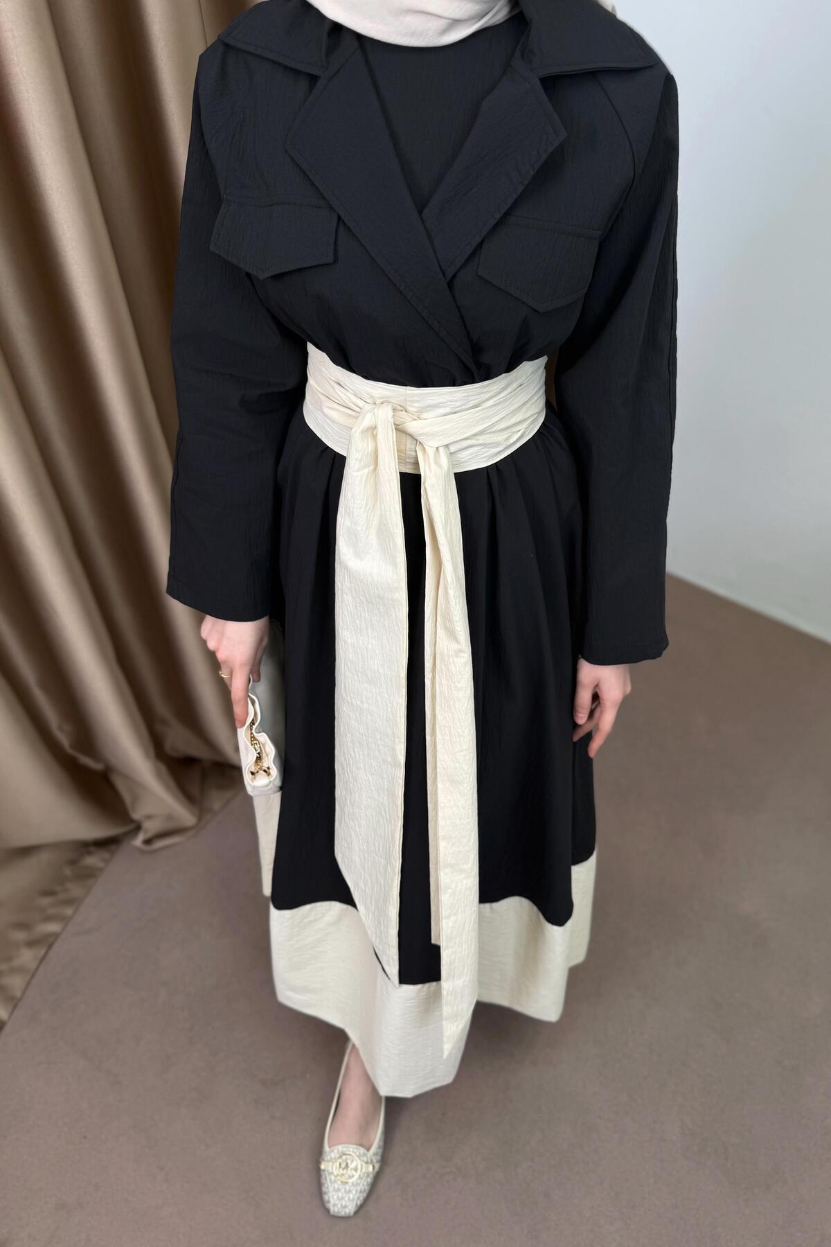 Kruvaze Yaka Garnili Elbise - Siyah Kruvaze Yaka Garnili Elbise - Siyah 6583 40/42