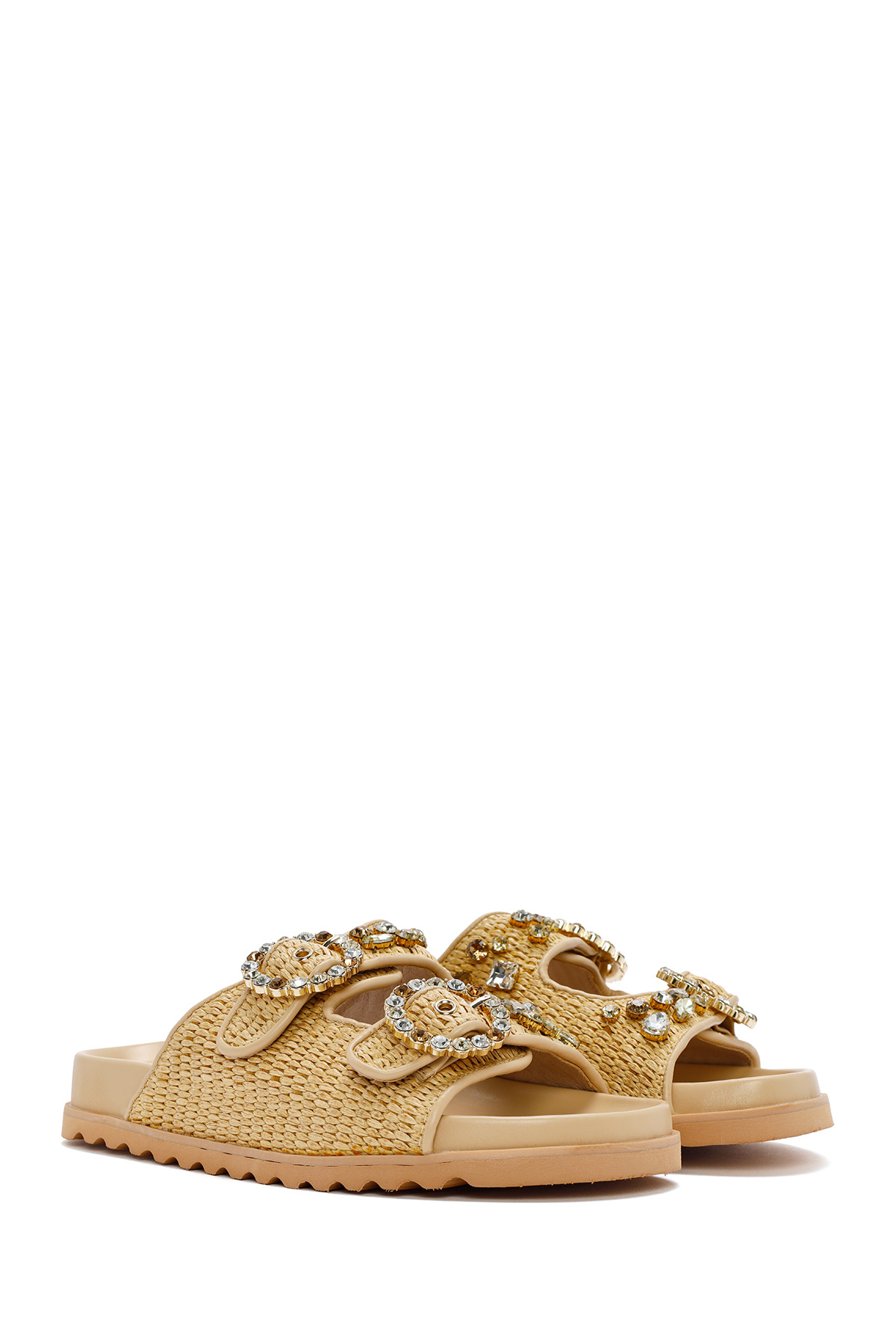 Kadın Bej Hasır Taşlı Terlik 25SFD4403M7 Kadın Bej Hasır Taşlı Terlik 25SFD4403M7 41