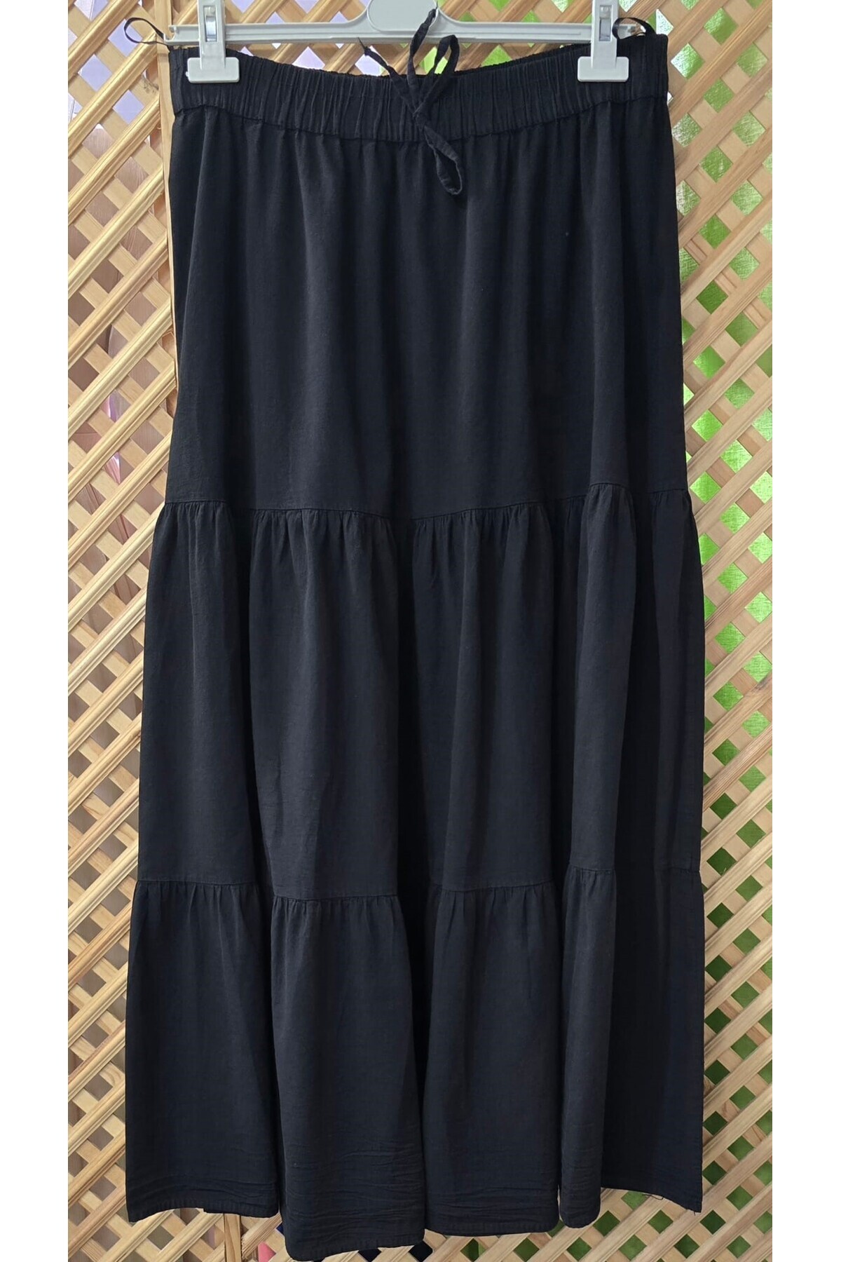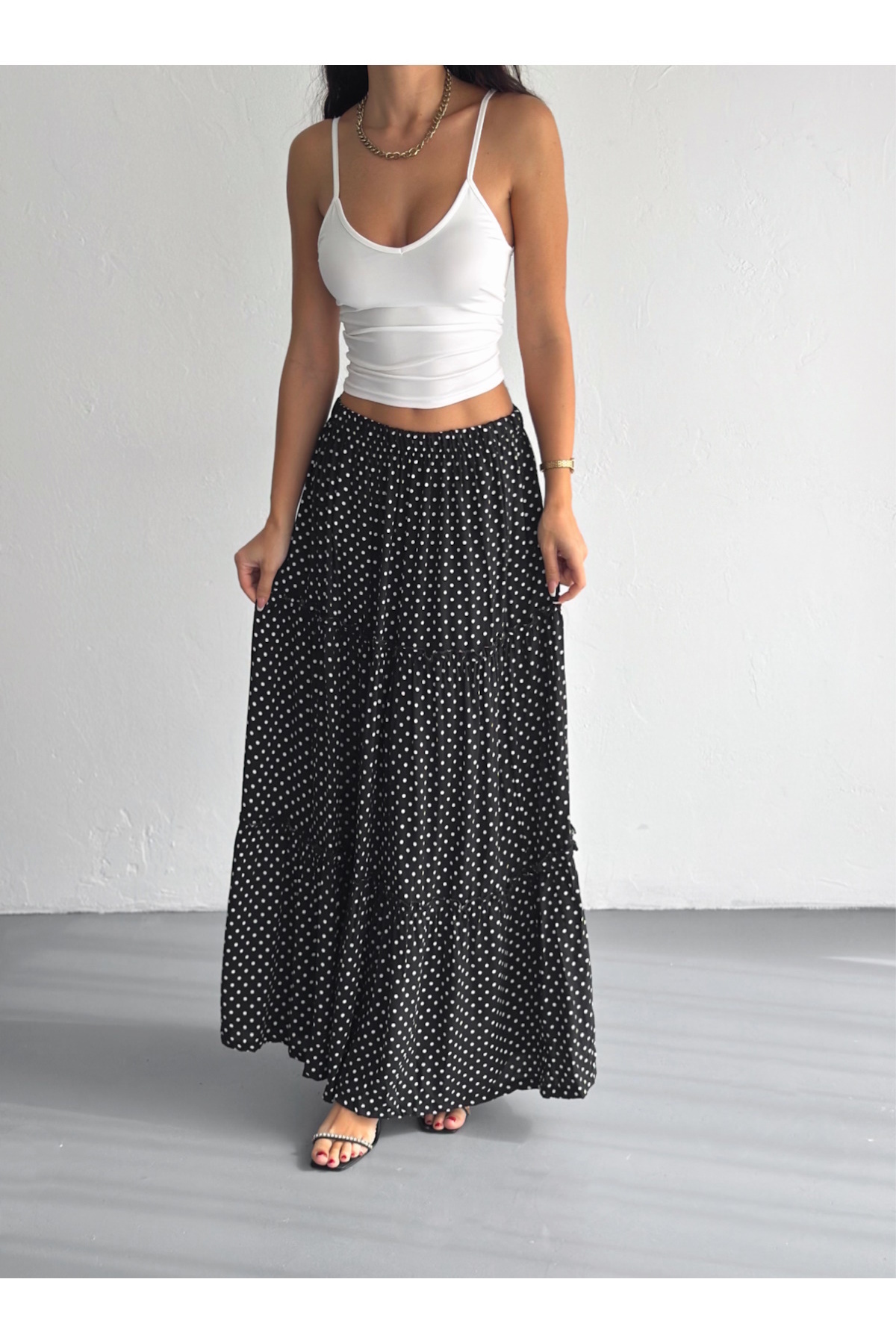 Kadın Büyük Beden Puantiyeli Beli Lastikli Fırfırlı Dokuma Kumaş Uzun Etek Boy 100 Cm Kadın Büyük Beden Puantiyeli Beli Lastikli Fırfırlı Dokuma Kumaş Uzun Etek Boy 100 Cm İS-FFR-2444 42
