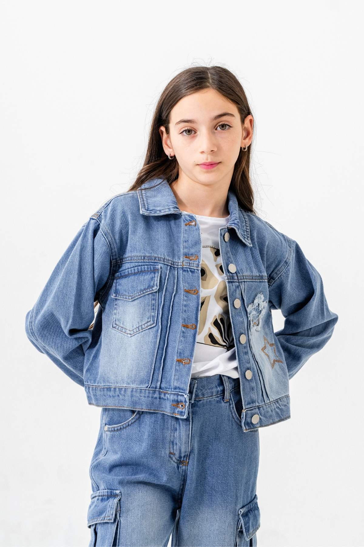 Kız Çocuk Nakışlı Kot Ceket 1550 Kız Çocuk Nakışlı Kot Ceket 1550 13 Yaş