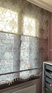 Çiçekleri Kahve Renkli Çift Mekanizmalı Boncuklu Tül Ve Stor Perde Çiçekleri Kahve Renkli Çift Mekanizmalı Boncuklu Tül Ve Stor Perde DANTEL 12 170 x 250
