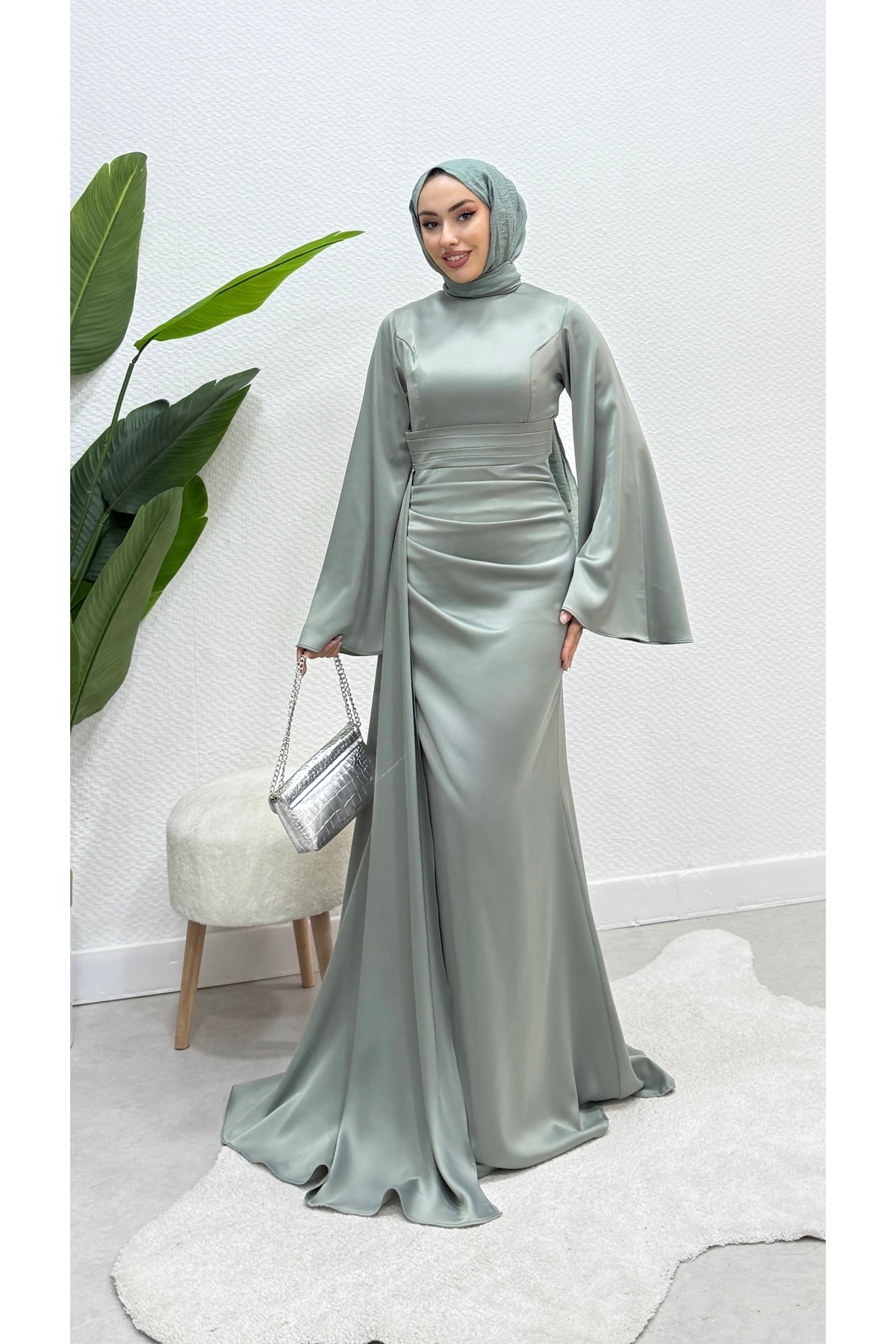 İspanyol Kol Kuyruklu Saten Tesettür Abiye İspanyol Kol Kuyruklu Saten Tesettür Abiye kubraramazan55 44