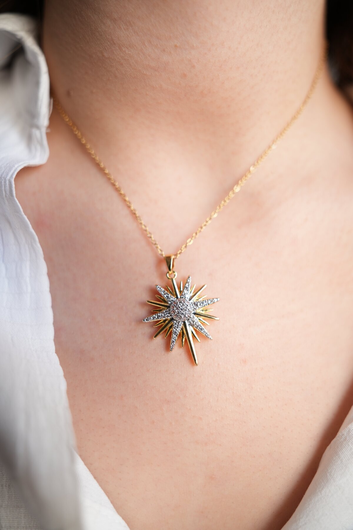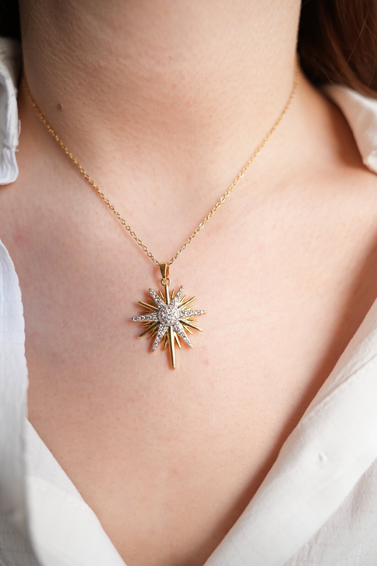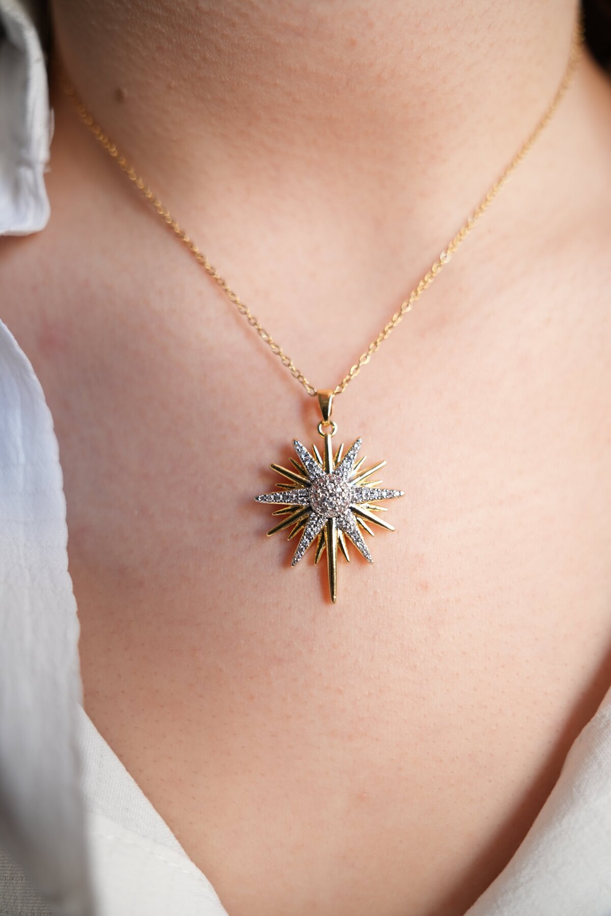 Çelik Gold Renk Zincir Zirkon Taşlı Kuzey Yıldızı Model Kadın Kolye Çelik Gold Renk Zincir Zirkon Taşlı Kuzey Yıldızı Model Kadın Kolye 85248548521258 Uzun